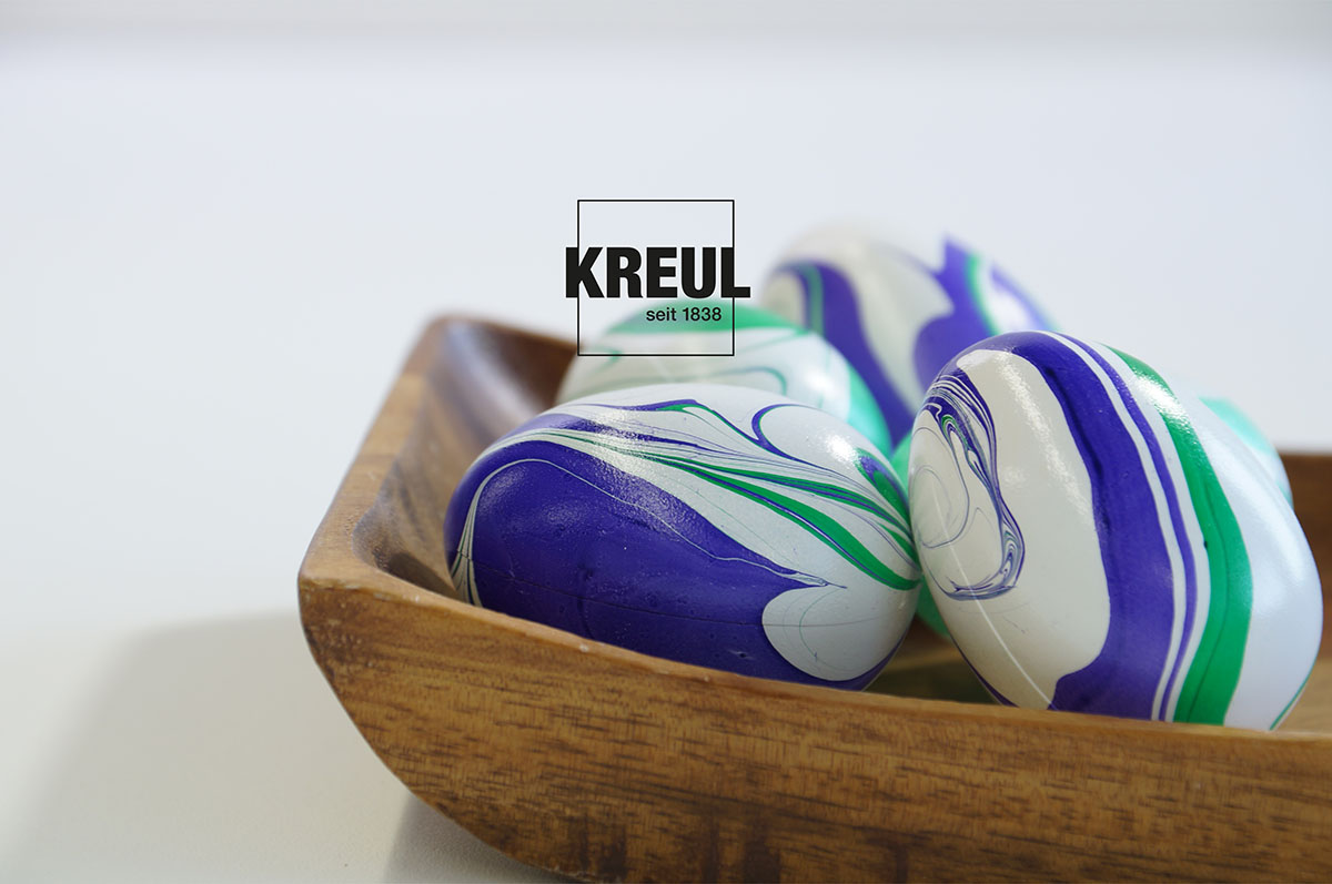 Setkali jste se už někdy s mramorováním? Tato technika je velice jednoduchá a tak můžete lehce tvořit i s vašimi dětmi. S mramorovacími barvami Kreul vytvoříte krásné dekorace, ať už mramorovaná velikonoční vajíčka, vánoční ozdoby, svíčky nebo cokoliv dalšího, co vás napadne. Mramorovat tak můžete např. pohlednice, porcelánové hrnečky, keramiku, skleněné dekorace či výrobky ze dřeva. Zkrátka, kdykoliv potřebujete vytvořit neobvyklý a neopakovatelný vzor, mramorování nabízí netušené možnosti.