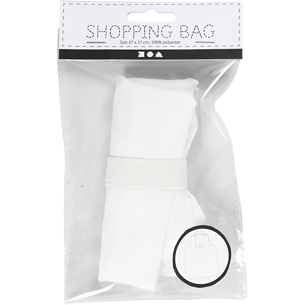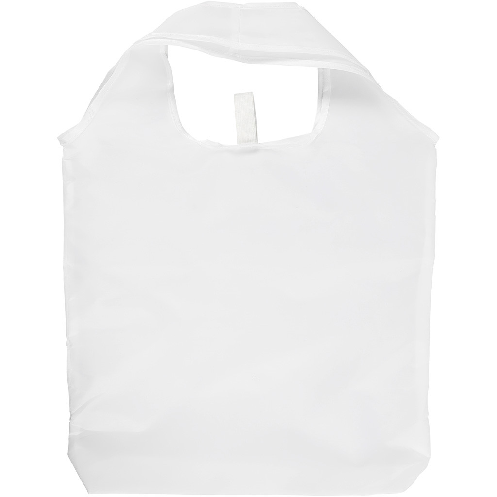 Praktická skládací nákupní taška ze 100% polyesteru k dekoraci fixem na textil, barvami na textil, razítky apod. Před dekorováním vyperte. Upozorňujeme, že polyester je nenasákavý materiál.