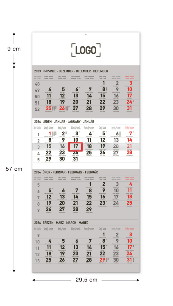 Nástěnný kalendář 4měsíční standard 2024, 29,5 × 57 cm