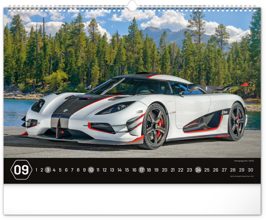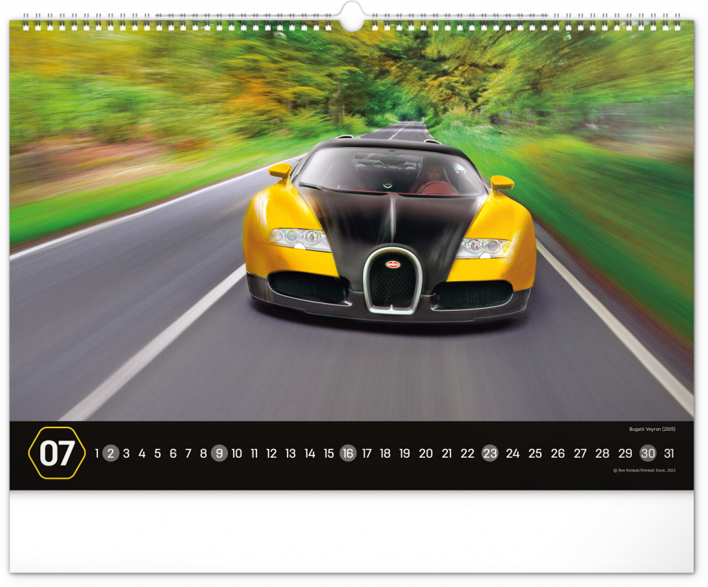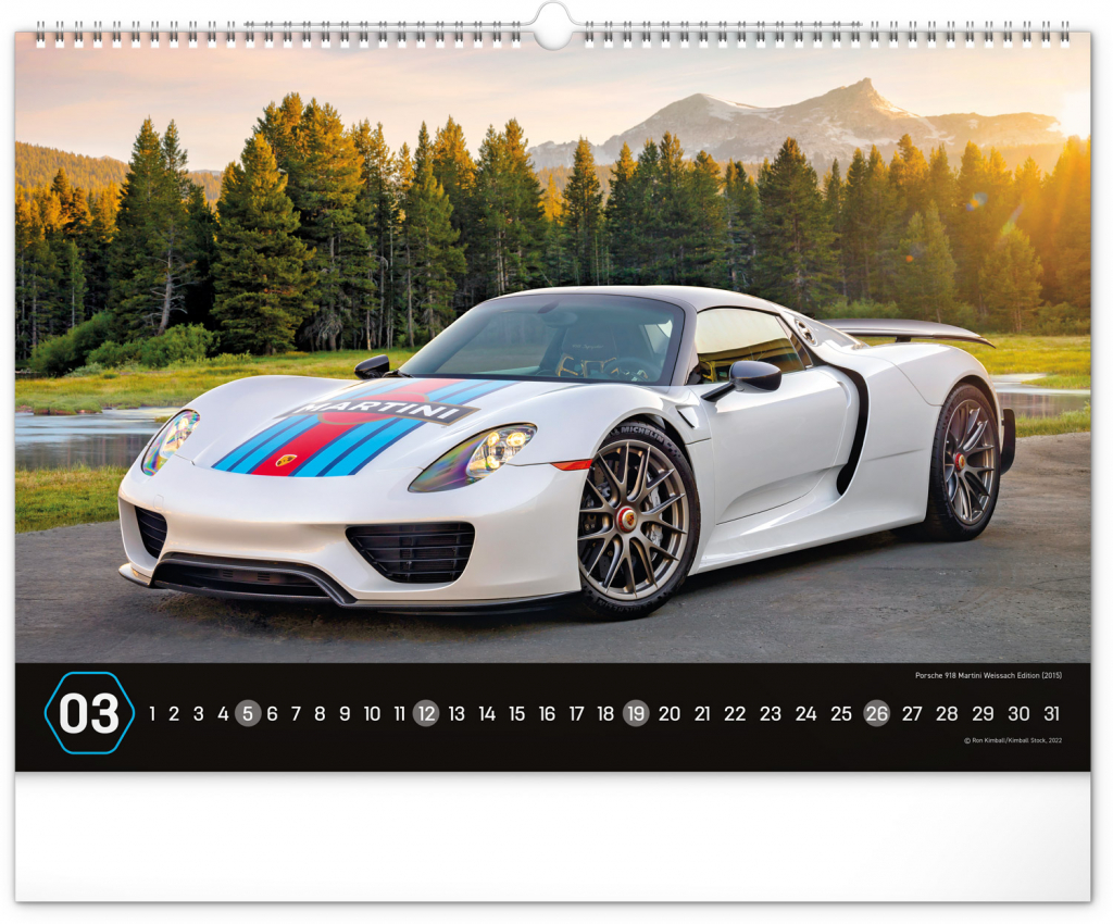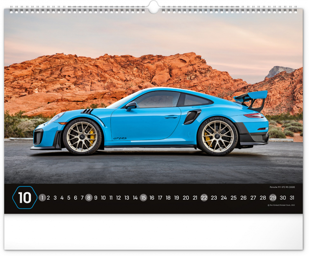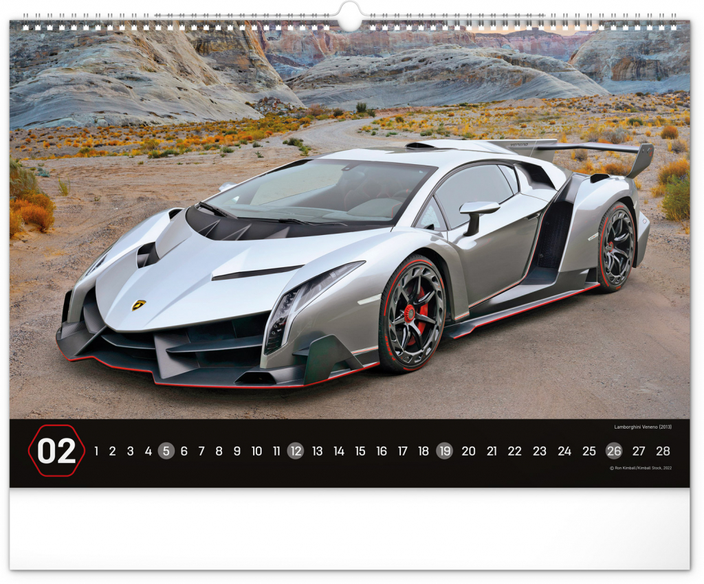 Nástěnný kalendář pro všechny milovníky rychlé jízdy a sportovních vozů. Dvanáct snímků luxusních sportovních vozů z celého světa na stránkách kalendáře v šířkovém formátu. Fotografie jsou doplněny univerzálním kalendáriem na černém pozadí.