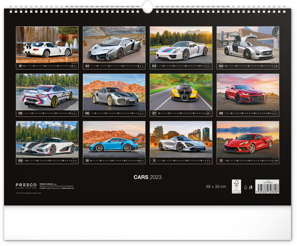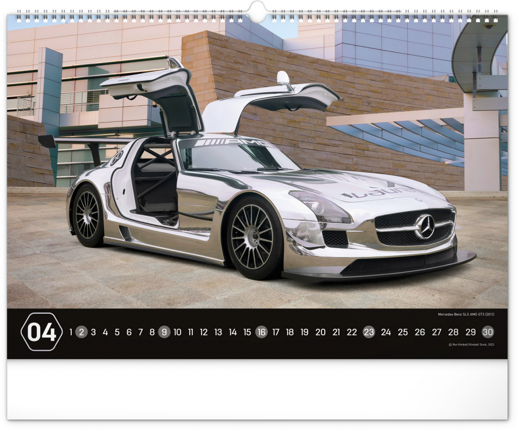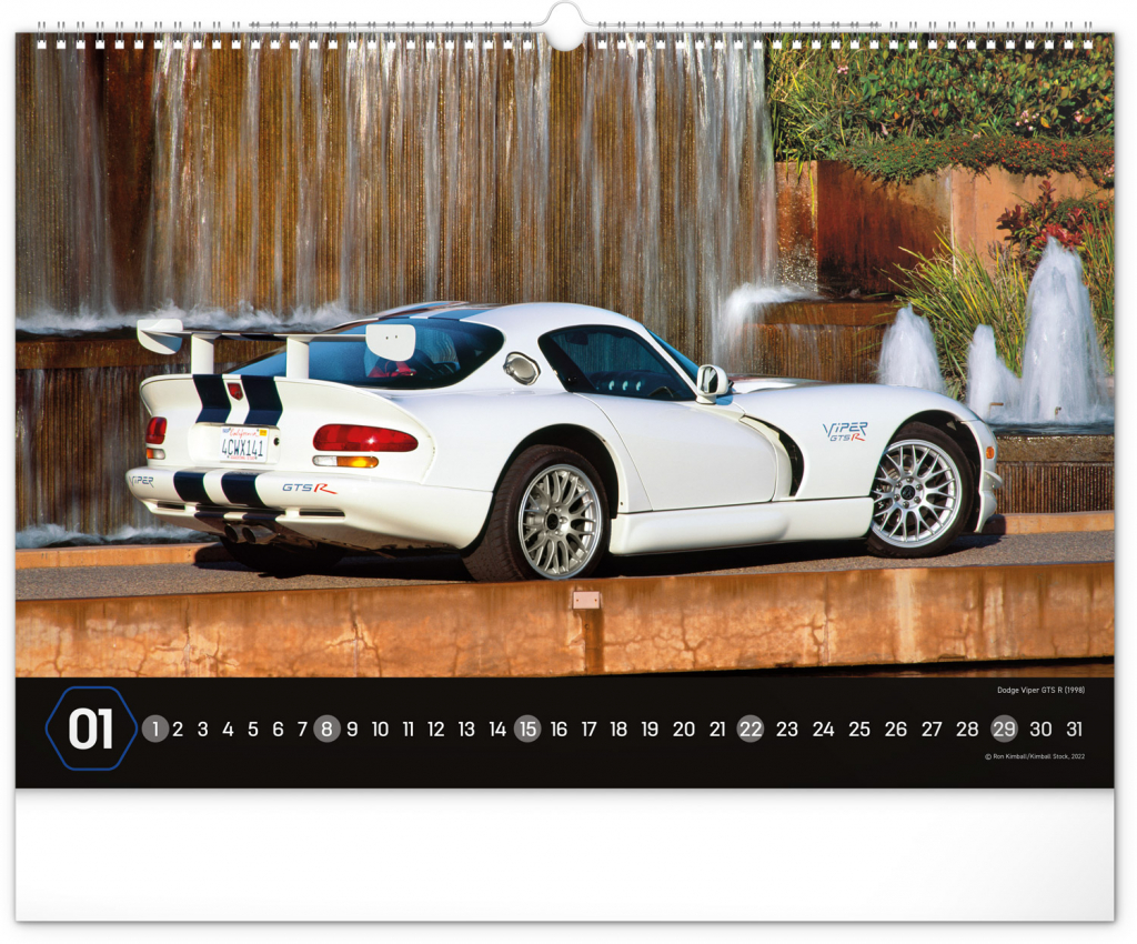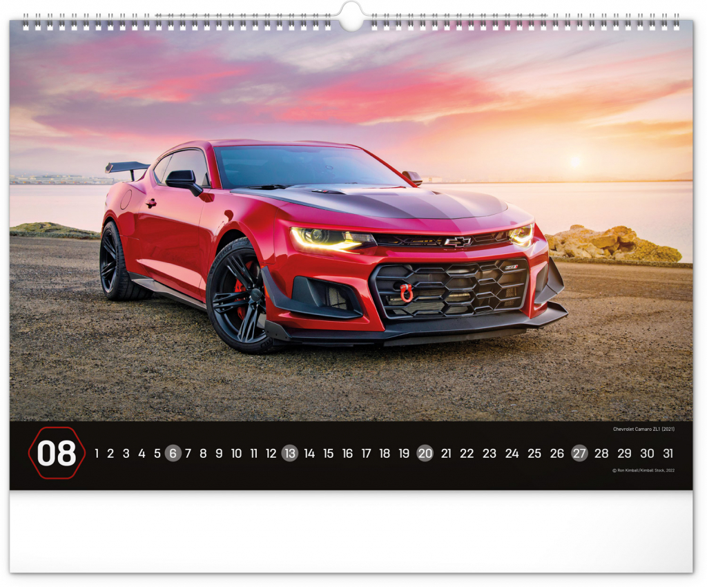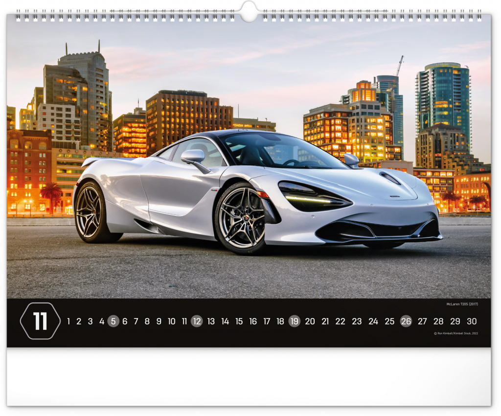Nástěnný kalendář pro všechny milovníky rychlé jízdy a sportovních vozů. Dvanáct snímků luxusních sportovních vozů z celého světa na stránkách kalendáře v šířkovém formátu. Fotografie jsou doplněny univerzálním kalendáriem na černém pozadí.