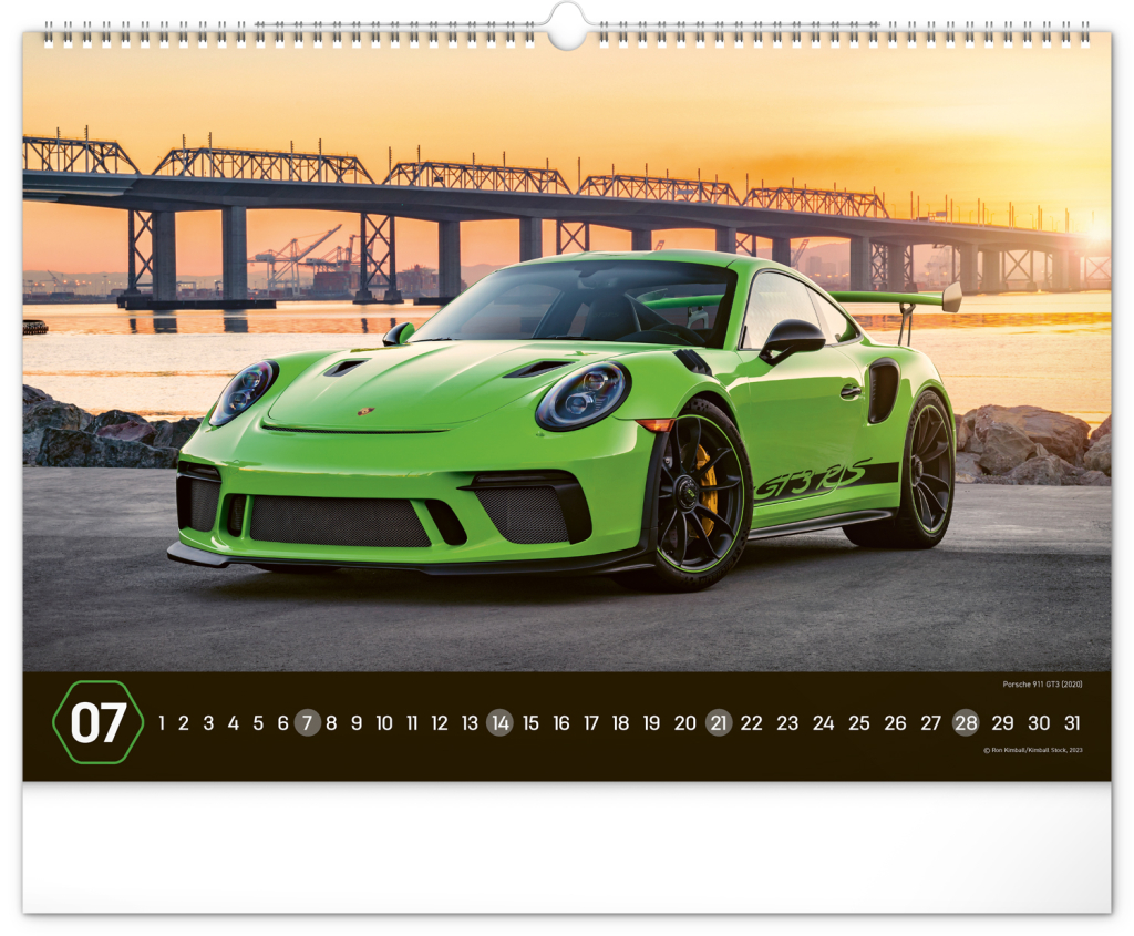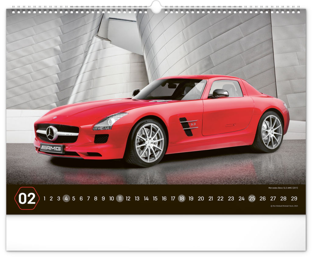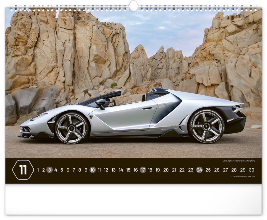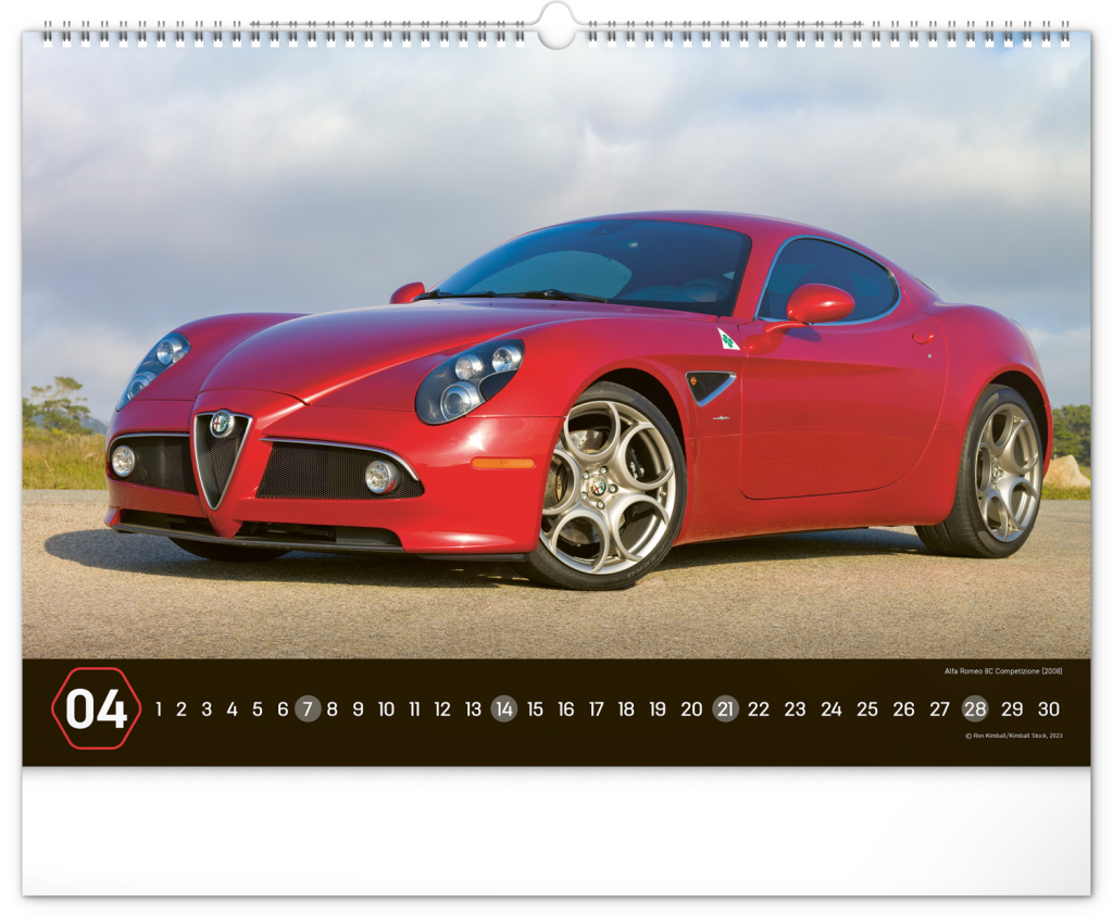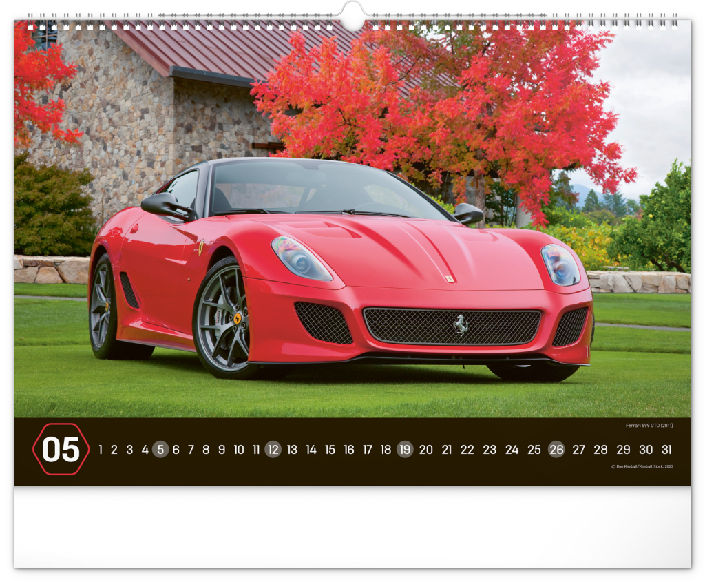 Nástěnný kalendář pro všechny milovníky rychlé jízdy a sportovních vozů. Dvanáct snímků luxusních sportovních vozů z celého světa na stránkách kalendáře v šířkovém formátu. Fotografie jsou doplněny univerzálním kalendáriem na černém pozadí.