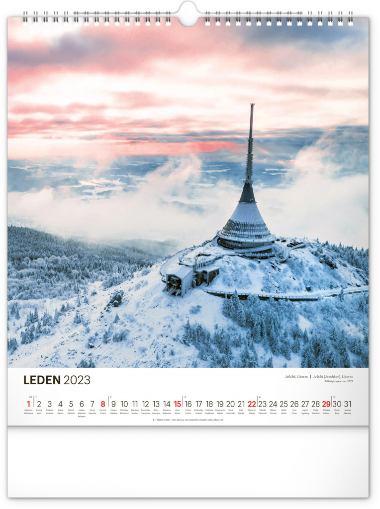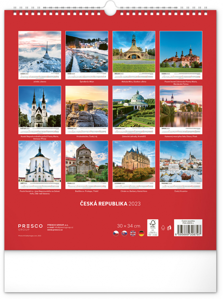 Dvanáct malebných míst České republiky – od Ještědu po Kroměříž. S českým kalendáriem a v praktickém formátu, který se hodí do každého interiéru.