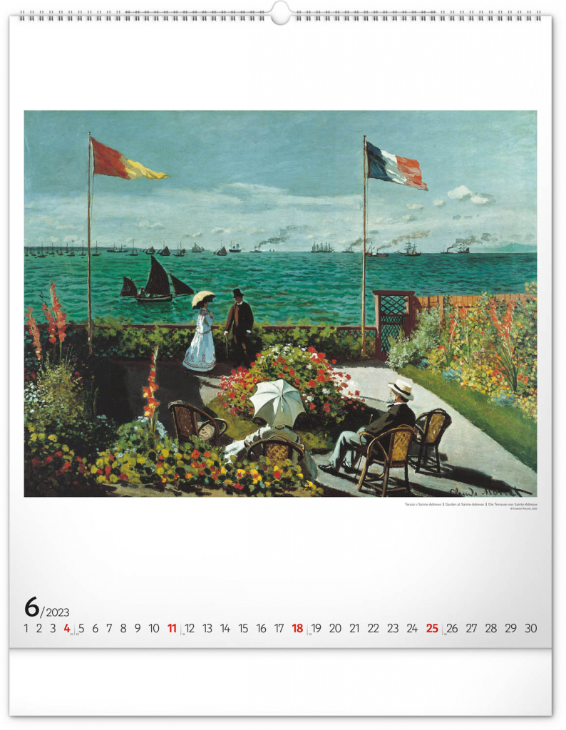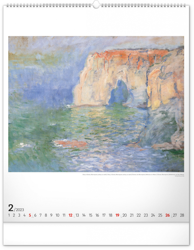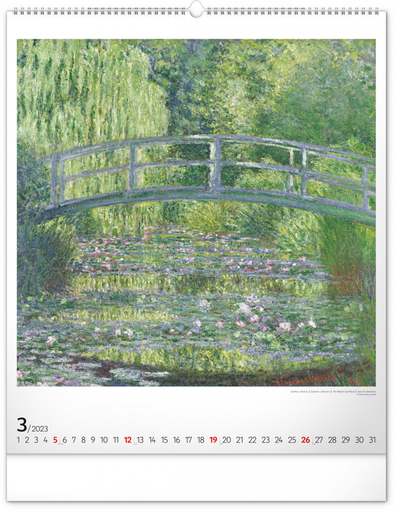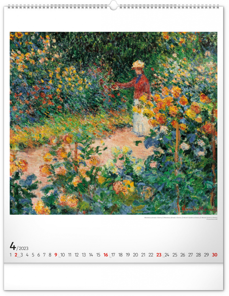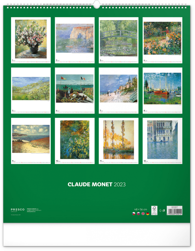 Seznamte se s dílem předního představitele impresionismu Clauda Moneta. Obrazy pestrých krajin a postav ožívají na velkém formátu kalendáře s vysokou gramáží papíru.