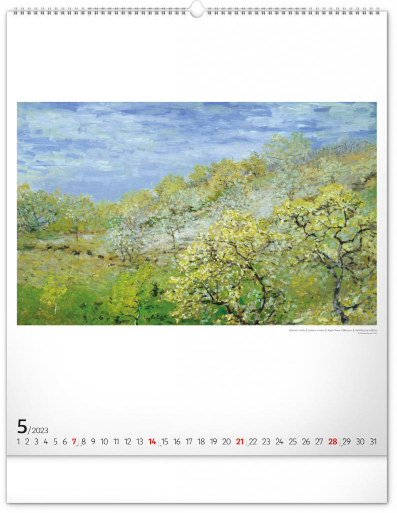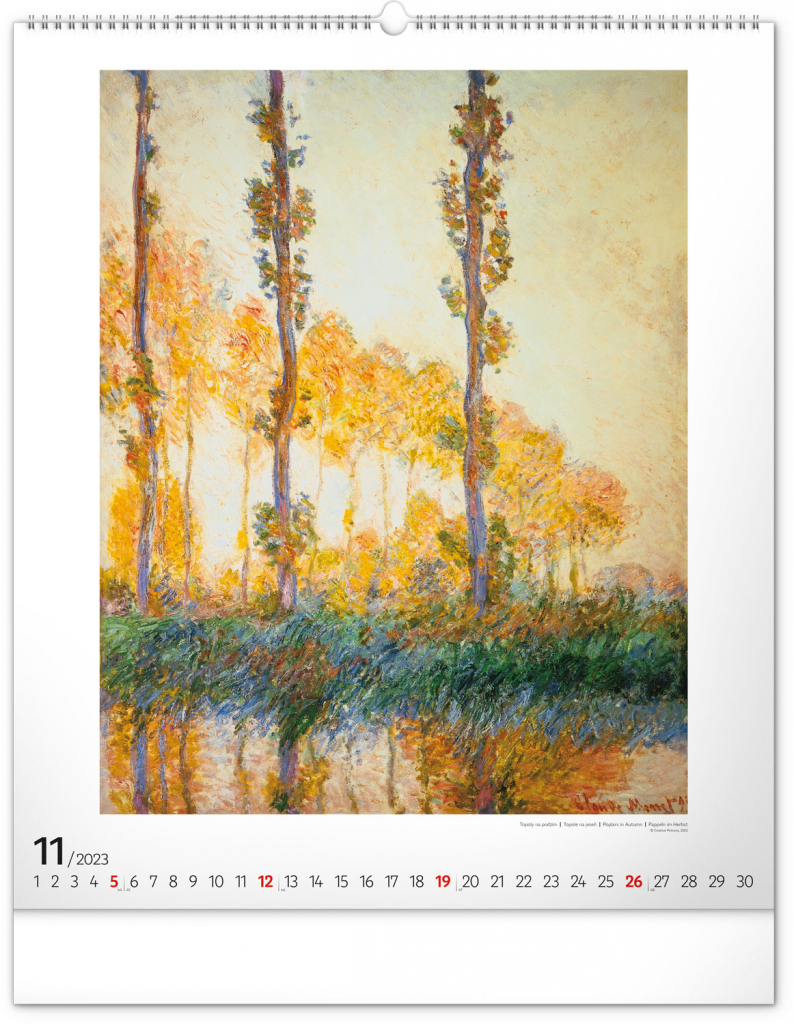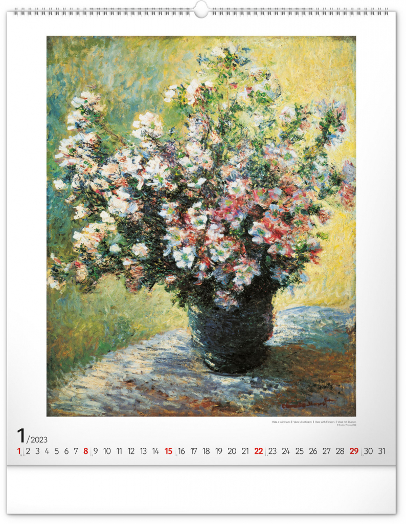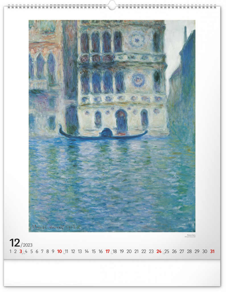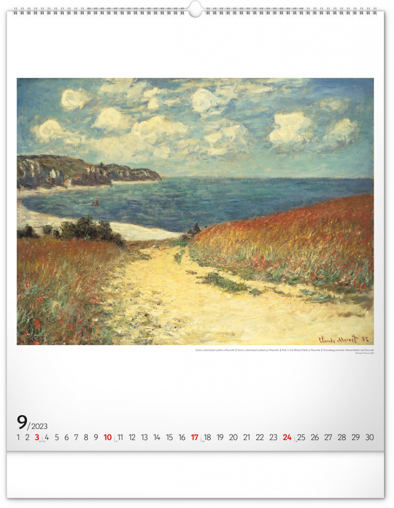 Seznamte se s dílem předního představitele impresionismu Clauda Moneta. Obrazy pestrých krajin a postav ožívají na velkém formátu kalendáře s vysokou gramáží papíru.