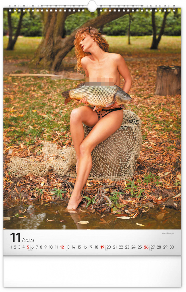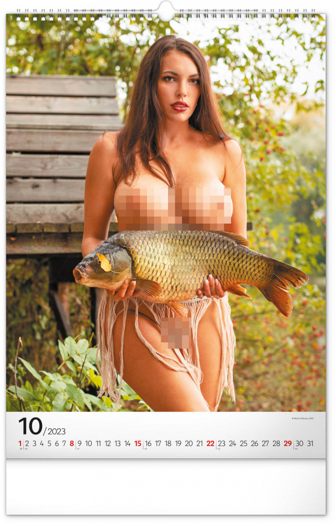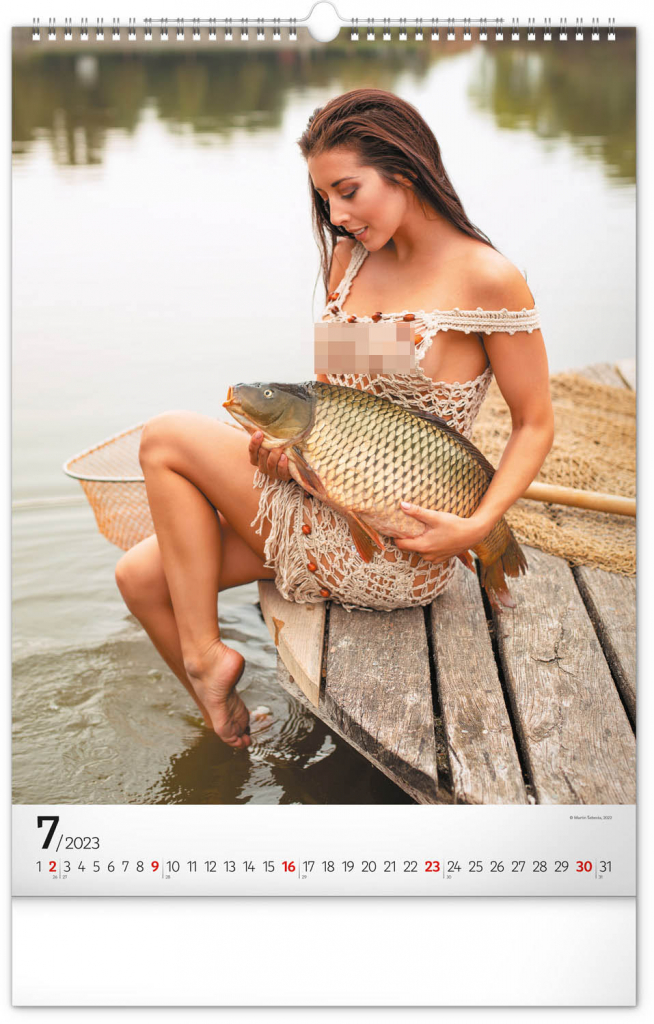 Nečekané spojení trofejních ryb a ženské krásy na stránkách nástěnného kalendáře s univerzálním kalendáriem pro všechny skutečně vášnivé rybáře.