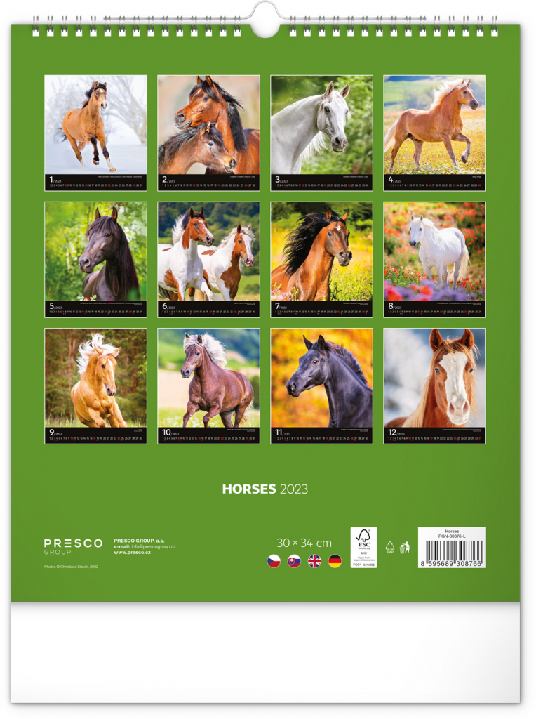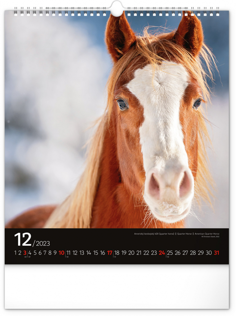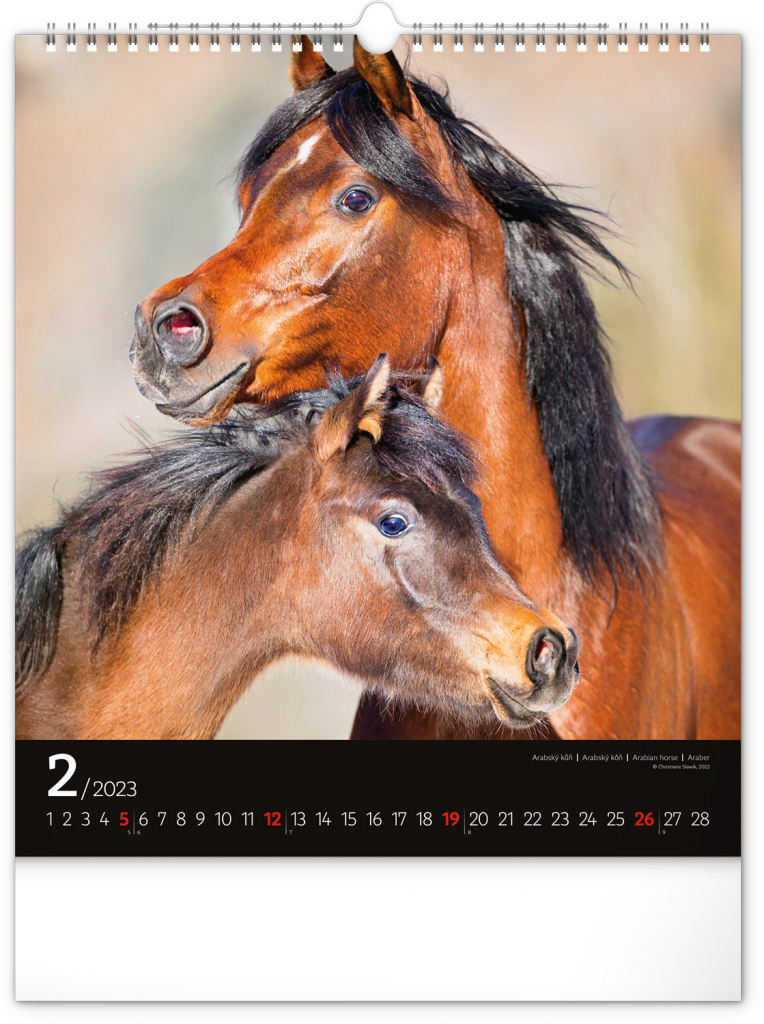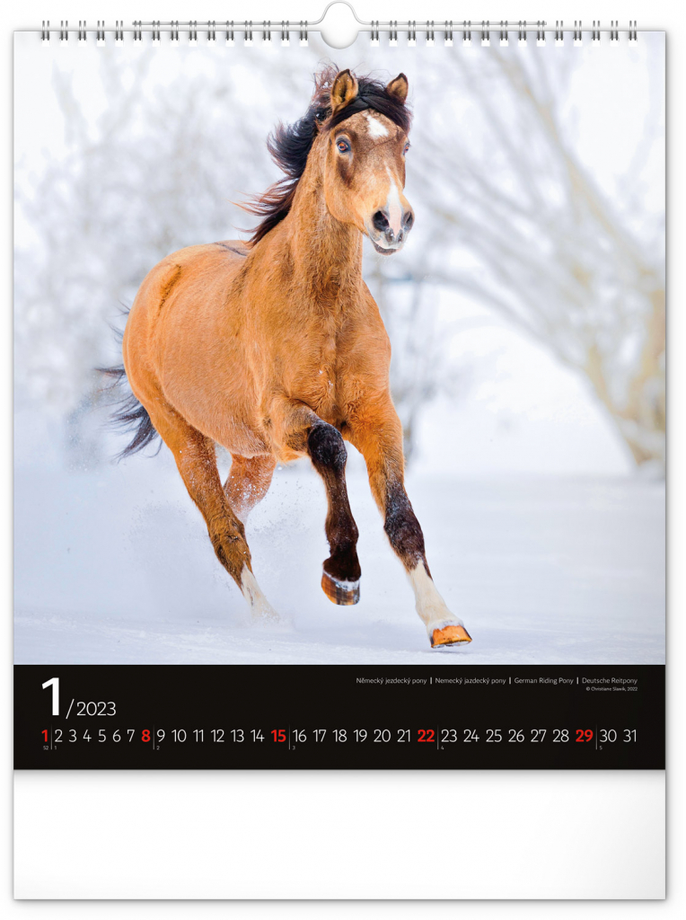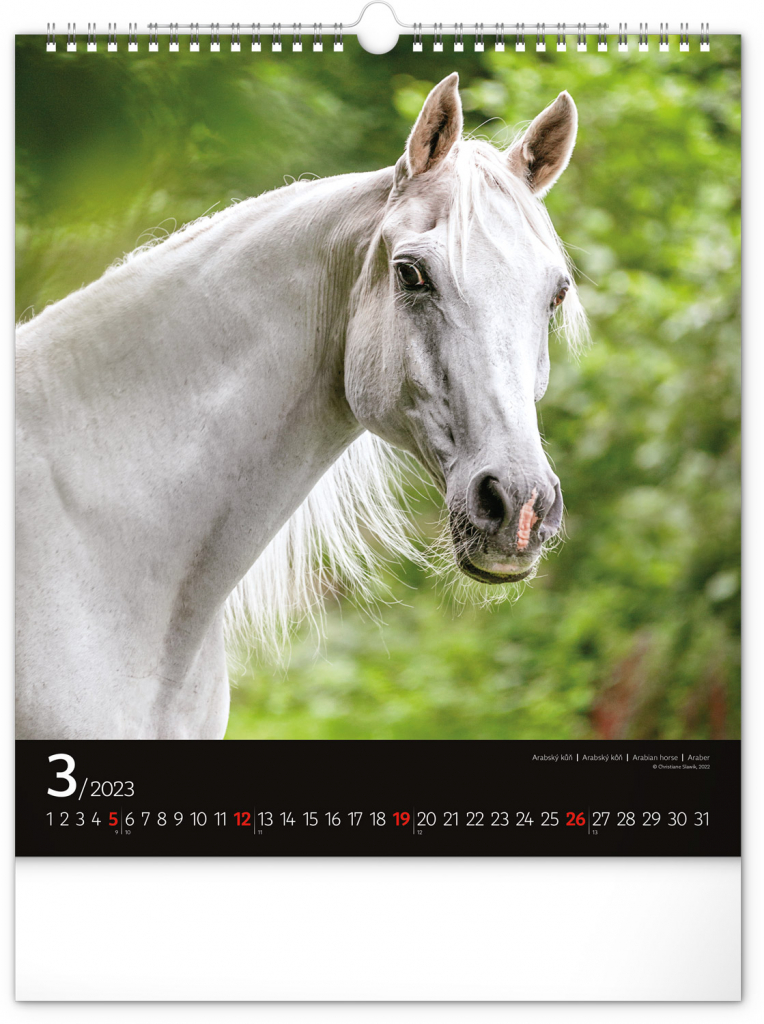Koně a jejich krása na originálních snímcích známé německé fotografky Christiane Slawik. Fotografie jsou doplněny univerzálním kalendáriem se zvýrazněnými nedělemi.