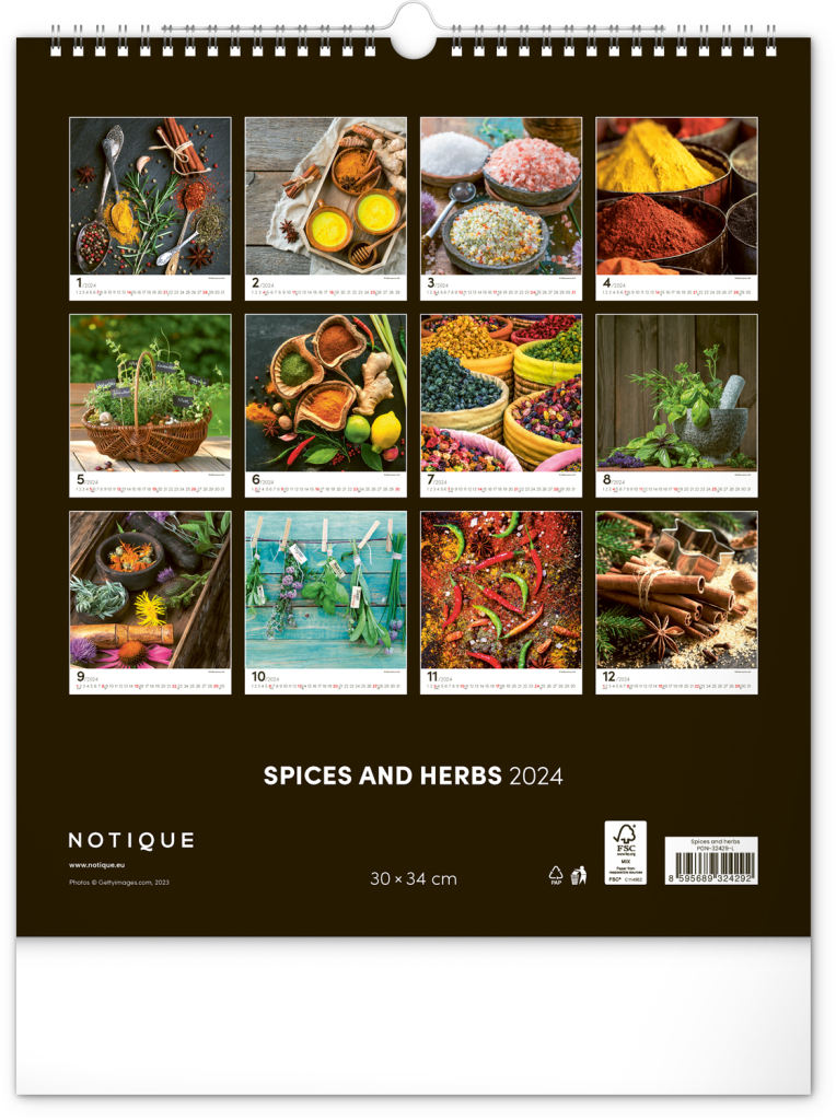 Nástěnný kalendář Koření a bylinky 2024, 30 × 34 cm