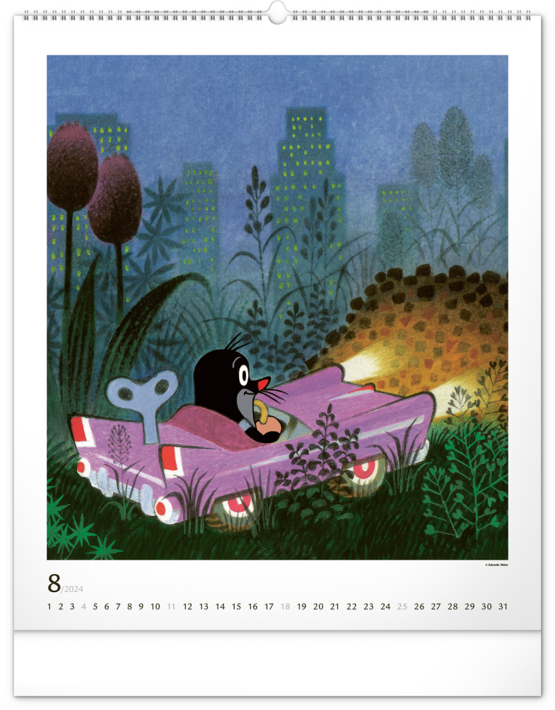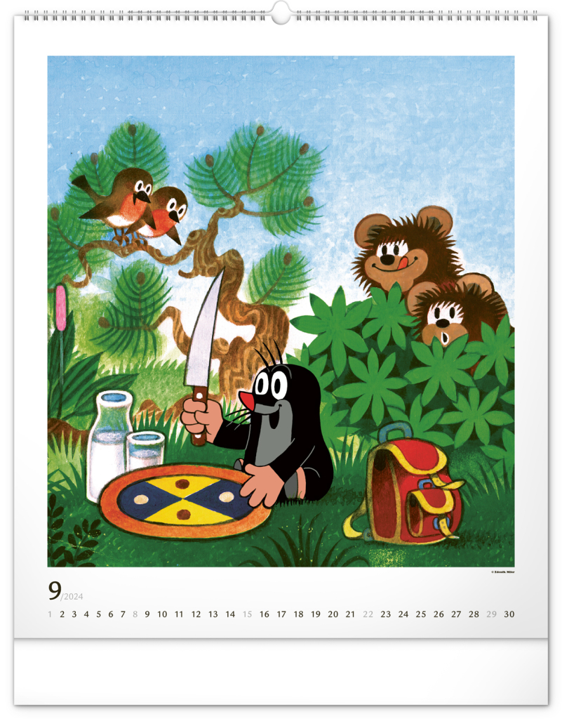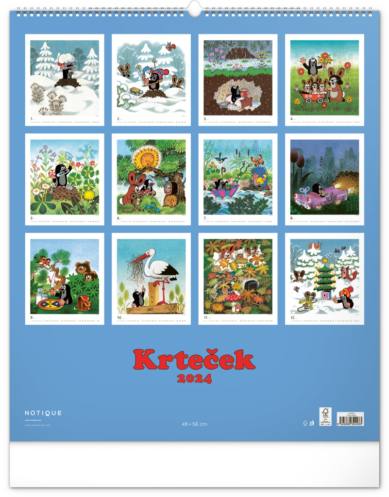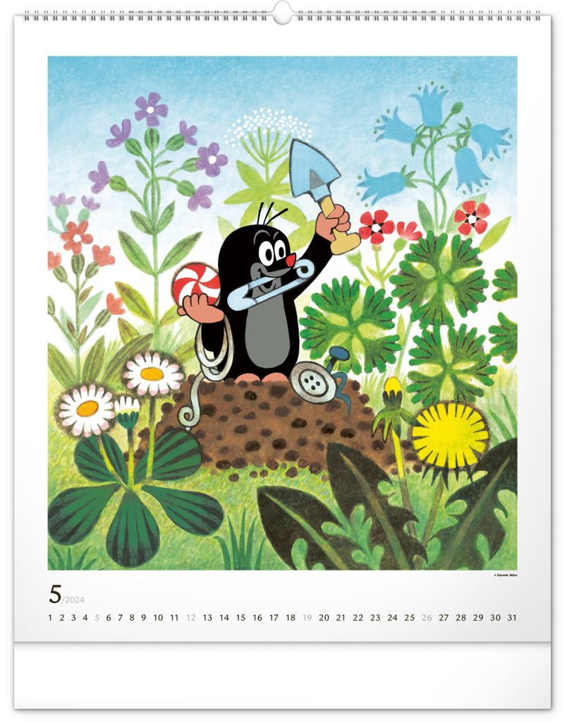 Příběhy o Krtečkovi a jeho dobrodružstvích v ilustracích Zdeňka Milera. Pokud jste také vyrostli na jeho příbězích, budete mile nadšeni. Velkoformátový kalendář je vytištěn na kvalitním papíru o vysoké gramáži, ilustrace doplňuje univerzální kalendárium se zvýrazněnými nedělemi na bílém pozadí.