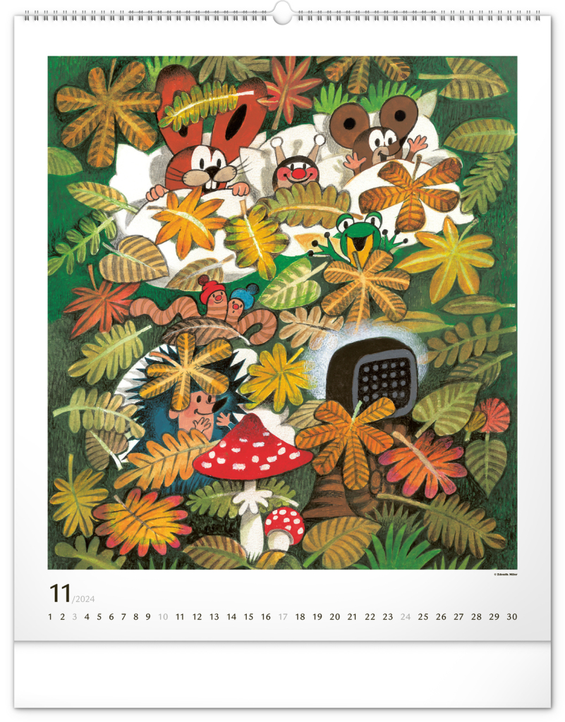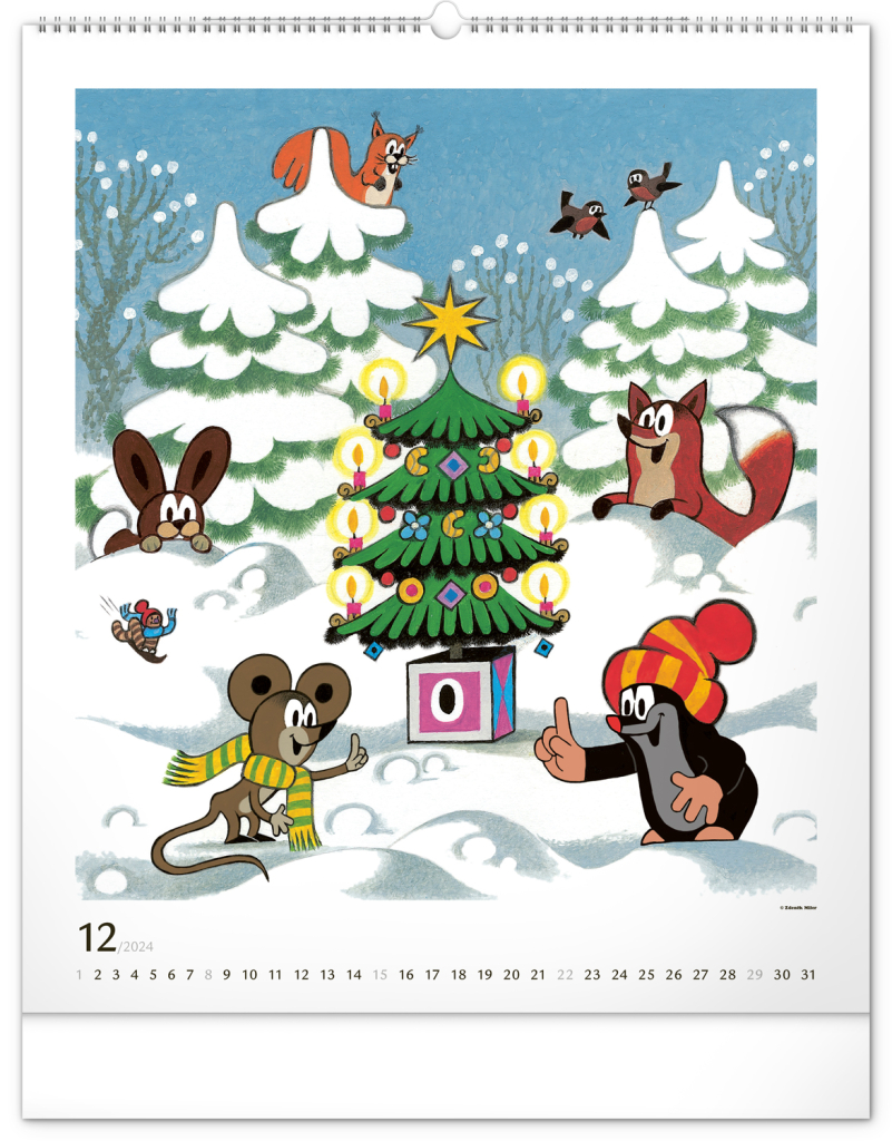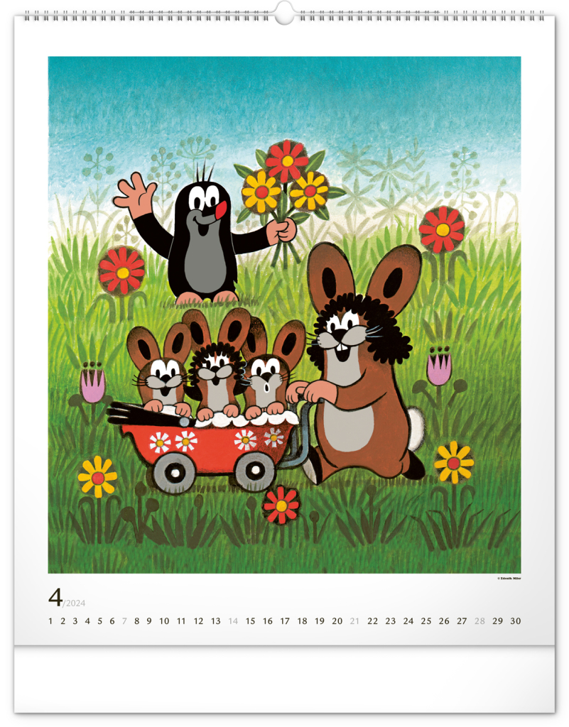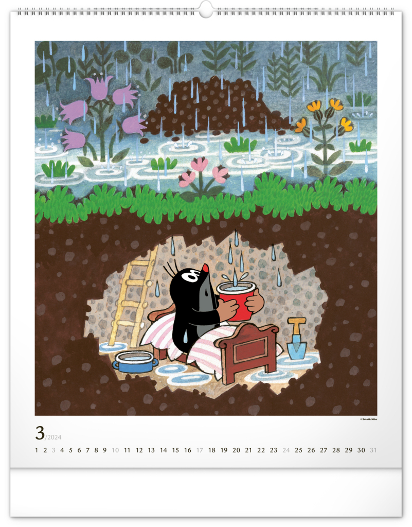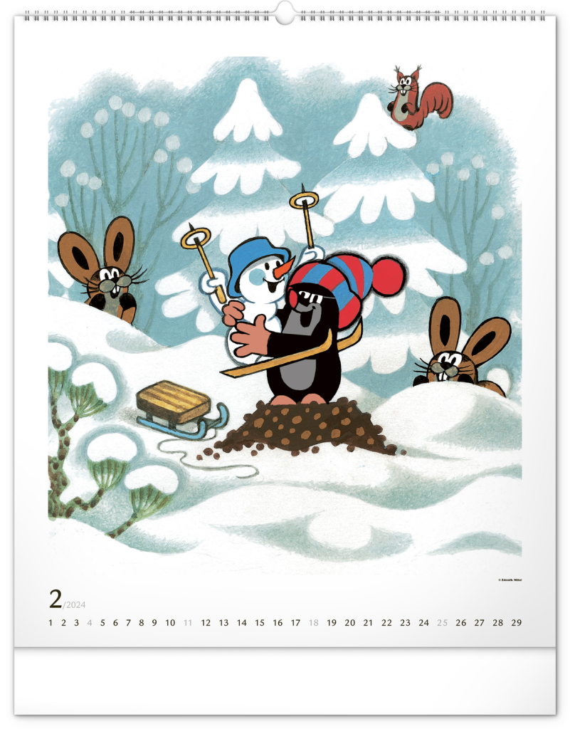 Příběhy o Krtečkovi a jeho dobrodružstvích v ilustracích Zdeňka Milera. Pokud jste také vyrostli na jeho příbězích, budete mile nadšeni. Velkoformátový kalendář je vytištěn na kvalitním papíru o vysoké gramáži, ilustrace doplňuje univerzální kalendárium se zvýrazněnými nedělemi na bílém pozadí.