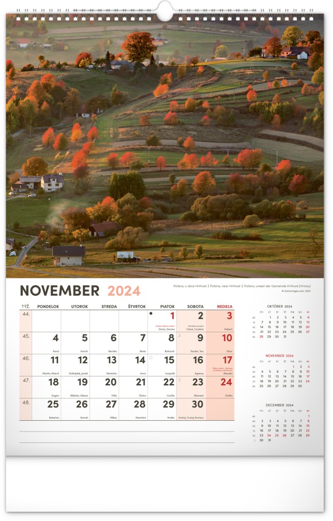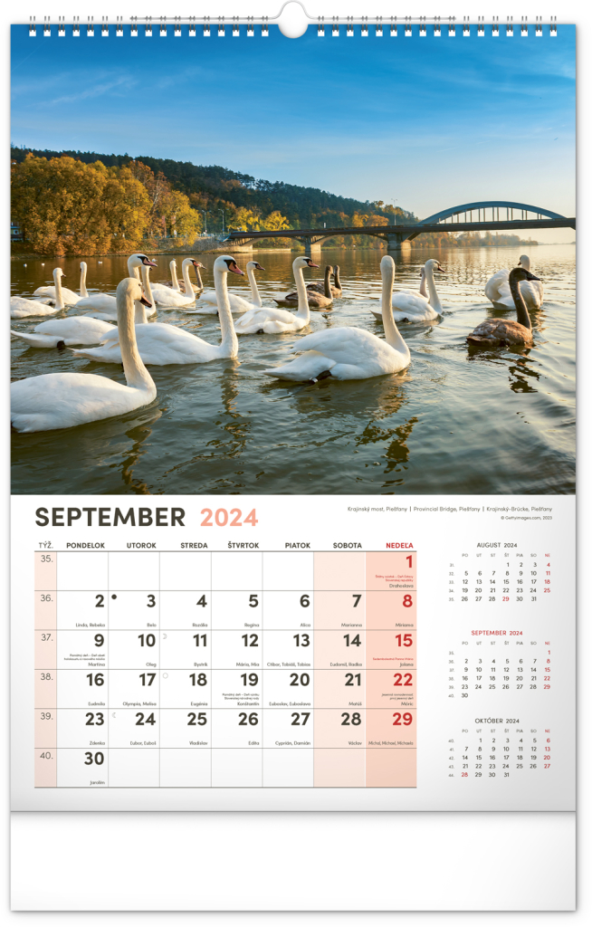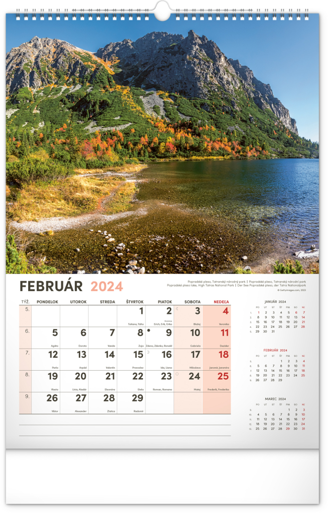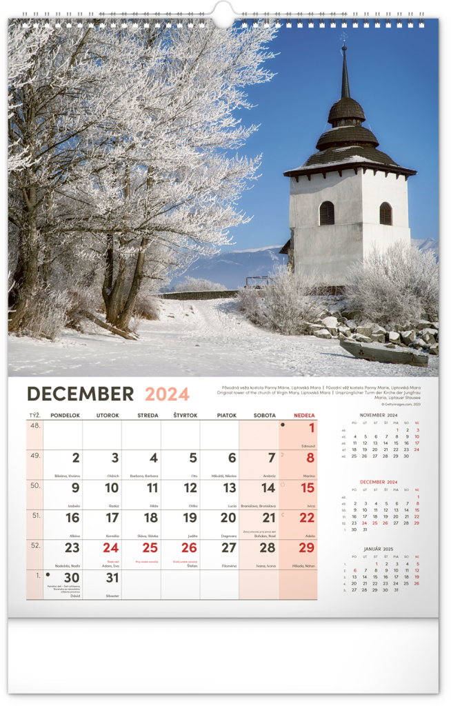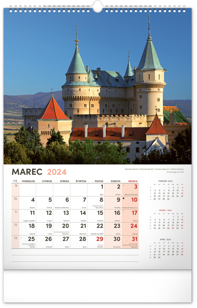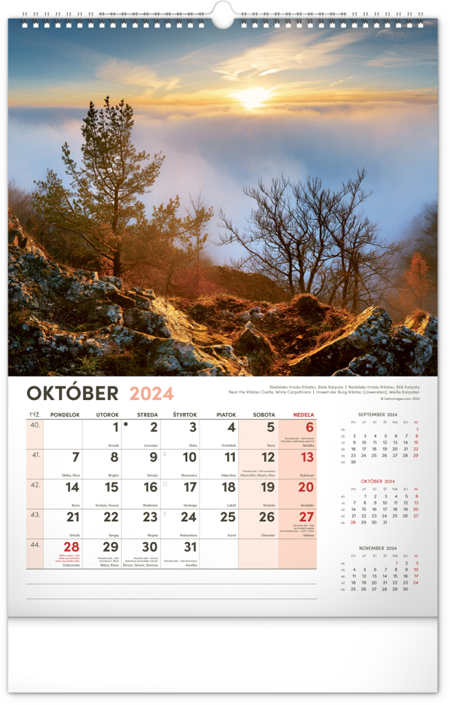 Kalendář obsahuje fotografie architektonických i přírodních památek z celého Slovenska. Kalendář výškového formátu obsahuje slovenské kalendárium se jmény, svátky, fázemi měsíce a tříměsíčním přehledem na každý měsíc. S prostorem na poznámky.