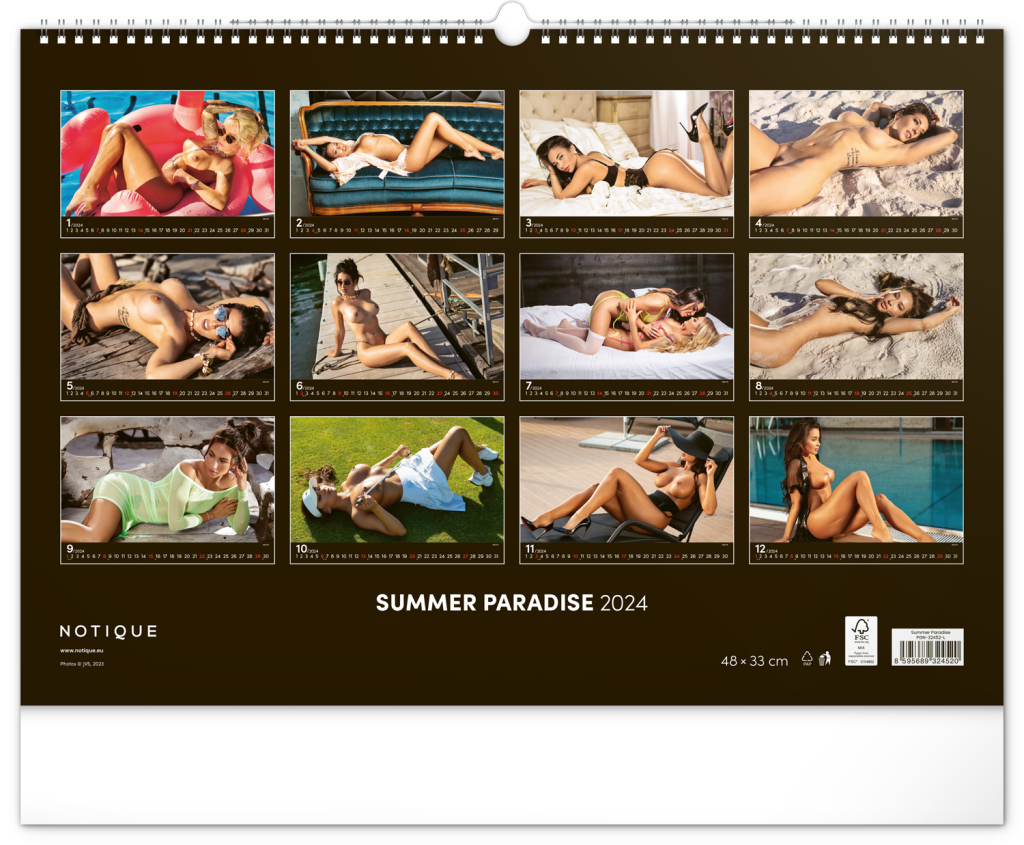 Kalendář s jednoduchým kalendáriem na vás dýchne letní atmosférou díky fotografiím přitažlivých dívek v typicky letním prostředí.