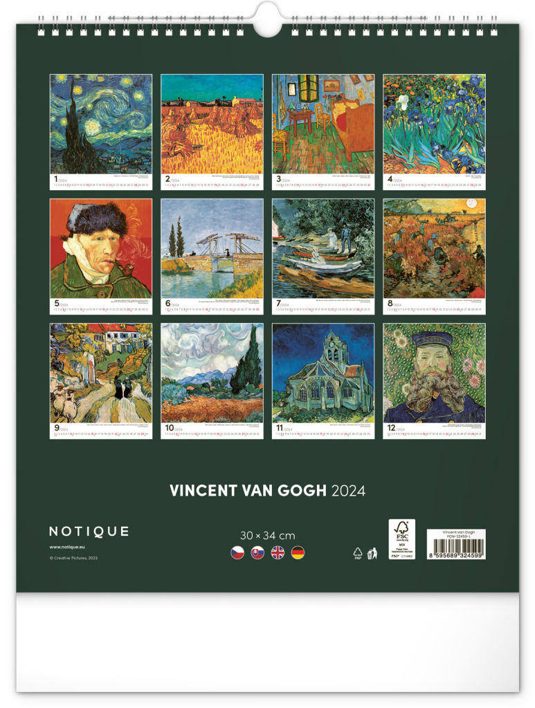 Nástěnný kalendář Vincent van Gogh 2024, 30 × 34 cm