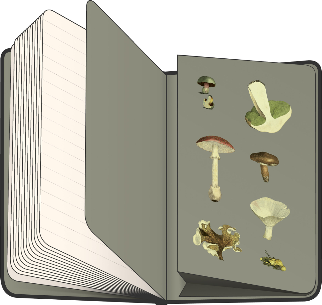Notes v pevných deskách z kolekce Kateřiny Winterové s ilustracemi hub, s uzavíráním na gumičku, kapsou na drobnosti a poutkem na tužku. Vevnitř najdete 172 linkovaných stran na žlutém papíře pro zapsání všech vašich nápadů.