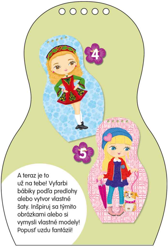 Kreativní omalovánky, vzory, samolepky… tyto knížky obsahují vše, co je třeba k vytváření nesčetných modelů podle módy jednotlivých kultur. Tradicemi inspirované náměty podněcují fantazii, a k tomu se děti dozvědí i pár zajímavých informací navrch! Jak jejich vrstevníci z blízkých i vzdálených zemí bydlí, jak se učí a baví, na jakých specialitách si pochutnávají. Vydejte se na objevitelské výpravy do vzdálených koutů světa!
