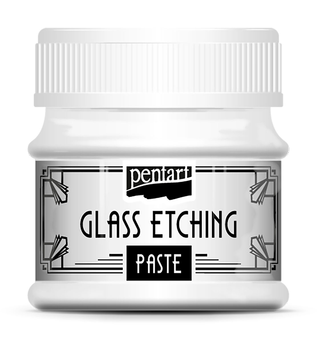 Necháme ji reagovat cca 15 min. a potom jí zmyjeme prudkým proudem vody. Na skle vznikne na dotyk jemná, matná vrstva, na kterou můžeme dále malovat nebo jí jiným způsobem ozdobit. Pastu můžeme nanést také přes šablonu. Doporučujeme použít samolepicí šablony nebo šablonovací sprej. Před použitím si prosím přečtěte příbalový letáček. Leptáním vzniká chemická reakce a je neodstanitelné.