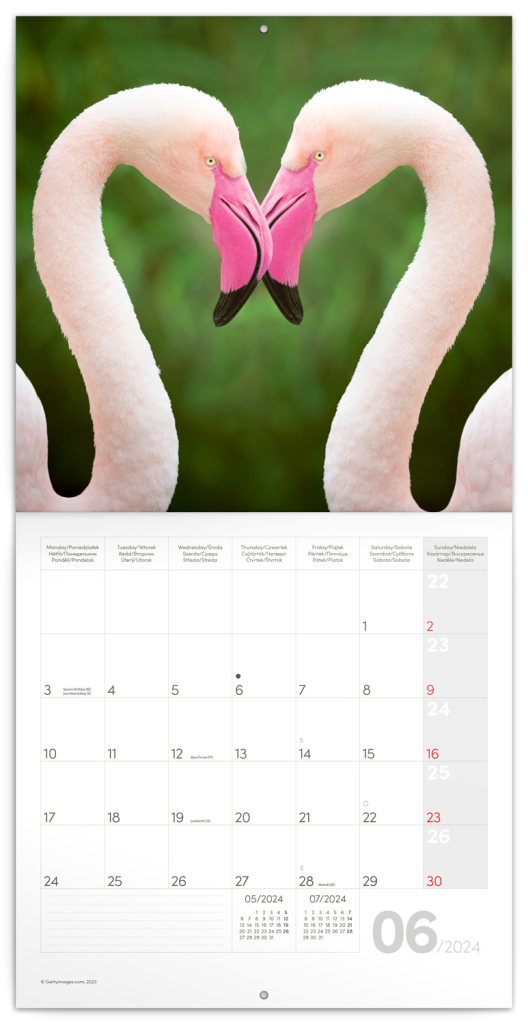 Fotografie roztomilých prasátek, opiček nebo lachtanů vám budou dělat radost celý rok. V kalendáři kromě fotek najdete přehledné kalendárium od září 2023 do prosince 2024 v šesti jazycích, fáze měsíce, důležité svátky a prostor pro poznámky na každý den.