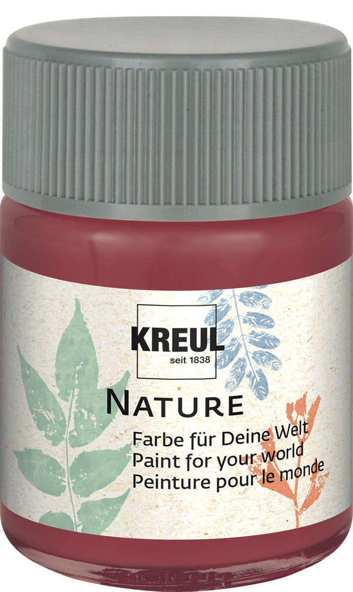 Pojďte s námi vyzkoušet naši novinku, ekologické barvy Kreul NATURE, které jsou inspirované samotnou přírodou. Tyto krémové, matné barvy na vodní bázi u nás najdete ve 12 krásných přírodních odstínech. Jsou rychleschnoucí a světlostálé. Vhodné na různé materiály zejm. na papír, karton, beton, keramickou hlínu anebo na materiály, které naleznete přímo v přírodě jako jsou dřevo, kamínky, mušle ši ořechové skořápky. Pro lepší ochranu před otřením je vhodné barvy přelakovat.