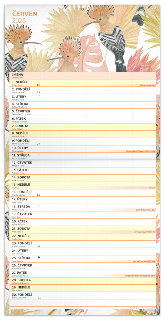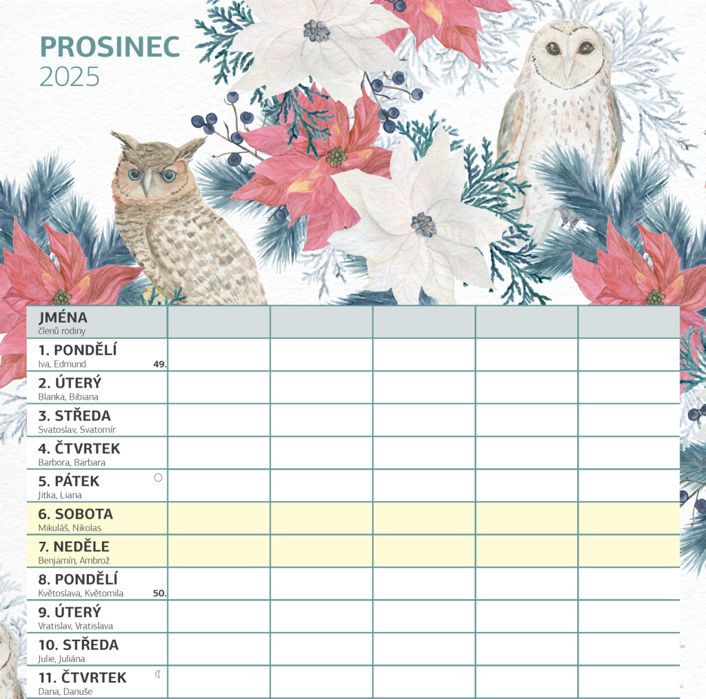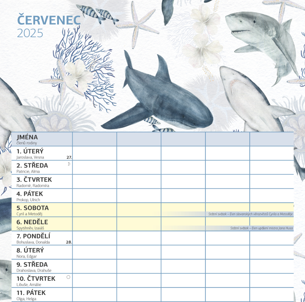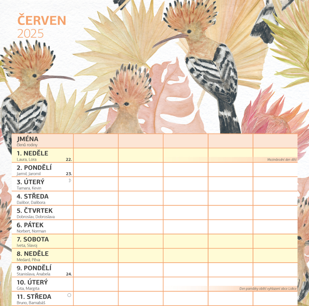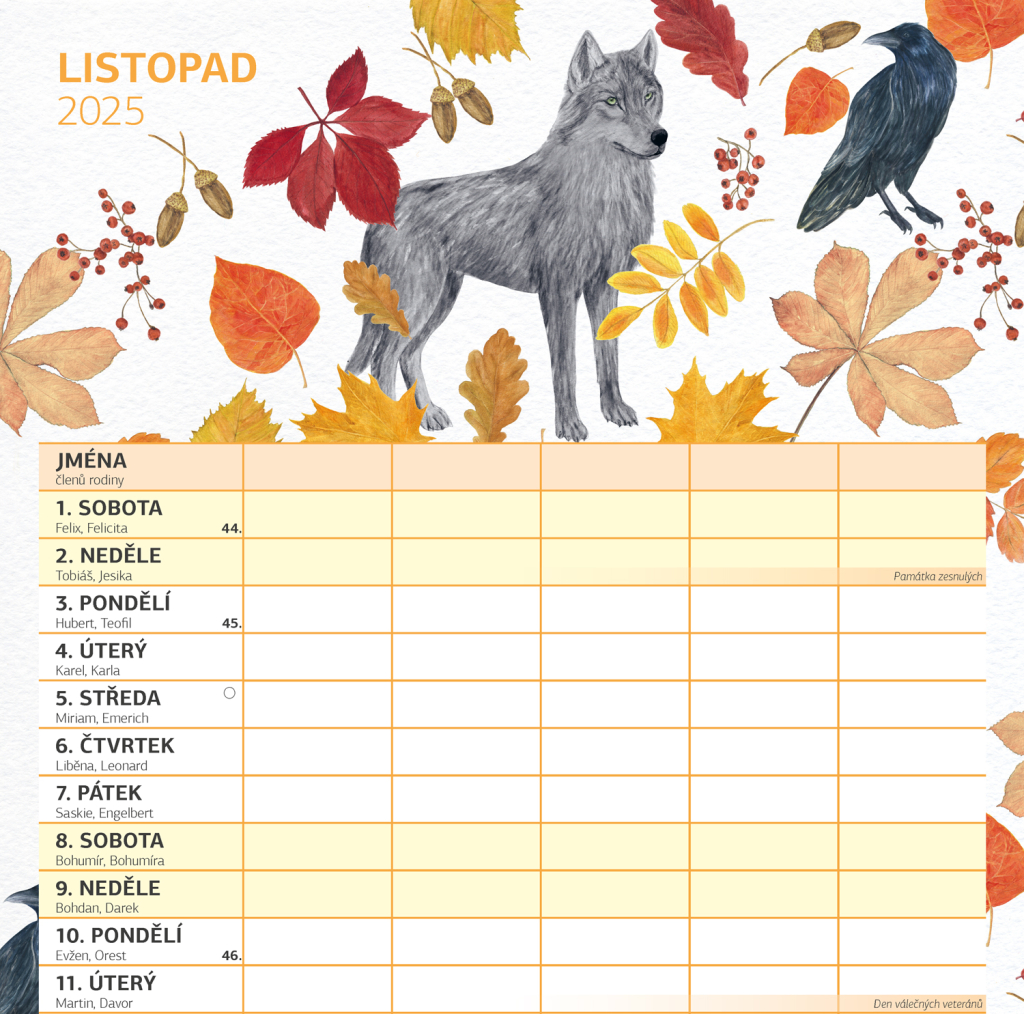 Zorganizujte všechny rodinné aktivity v praktickém nástěnném kalendáři, který obsahuje české kalendárium a samostatný plánovač aktivit pro až pět členů domácnosti. Kalendář doplňují veselé ilustrace s rodinnými motivy pro každé roční období.
