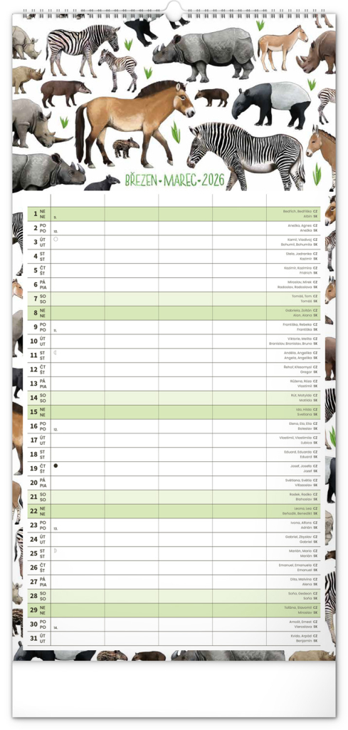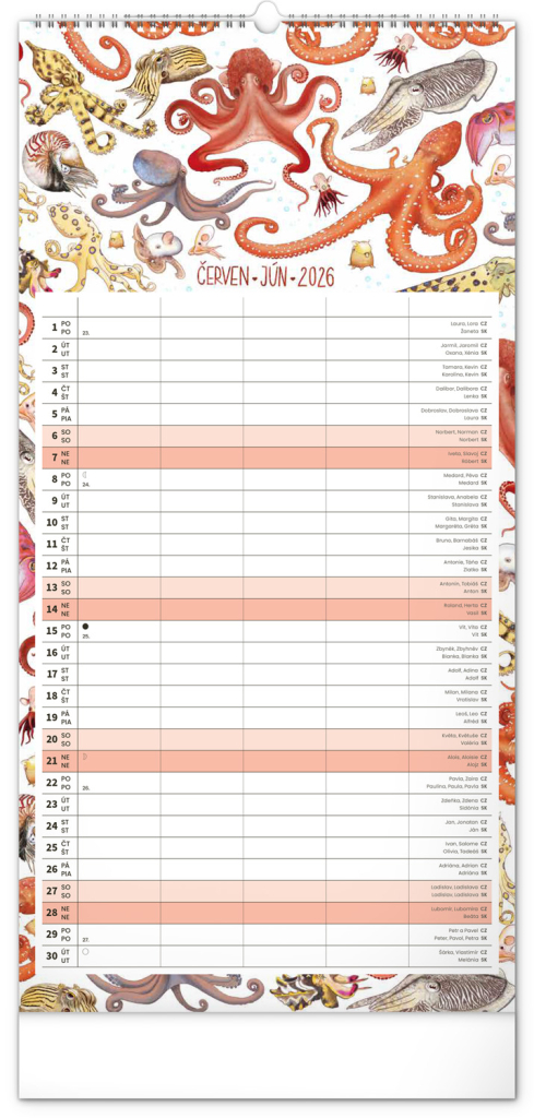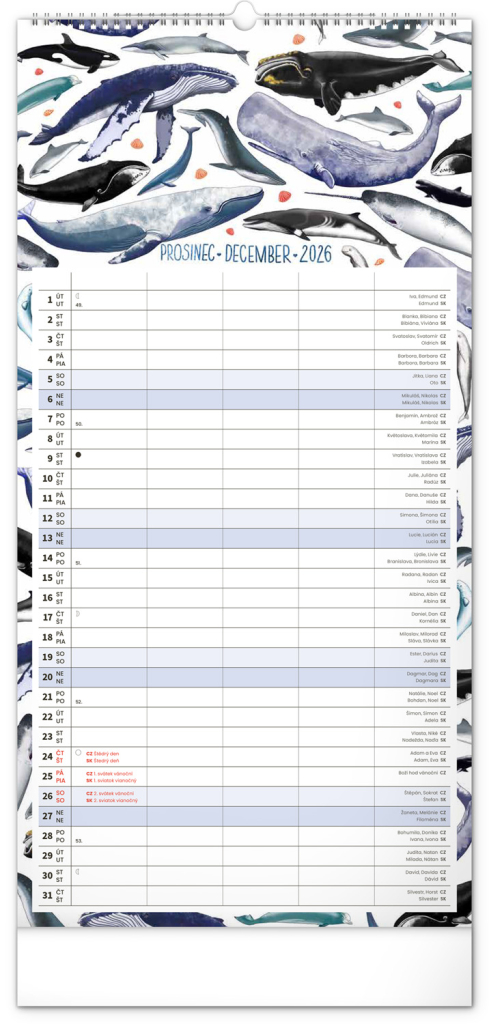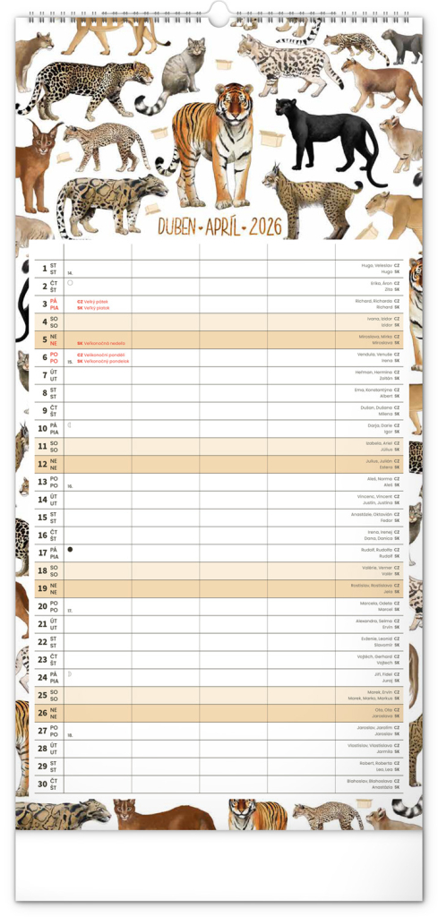 Velikost 21 x 42 cm je ideální – kalendář se krásně vejde na stěnu v kuchyni, předsíni i pracovně, přesto nabízí opravdu štědrý prostor na poznámky.