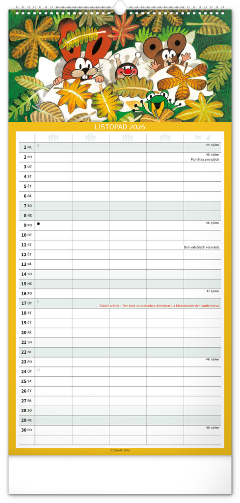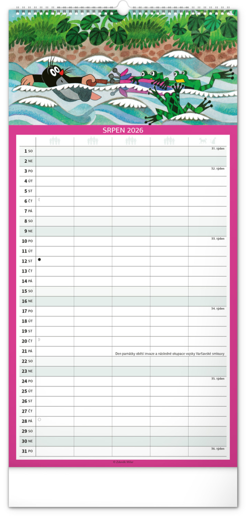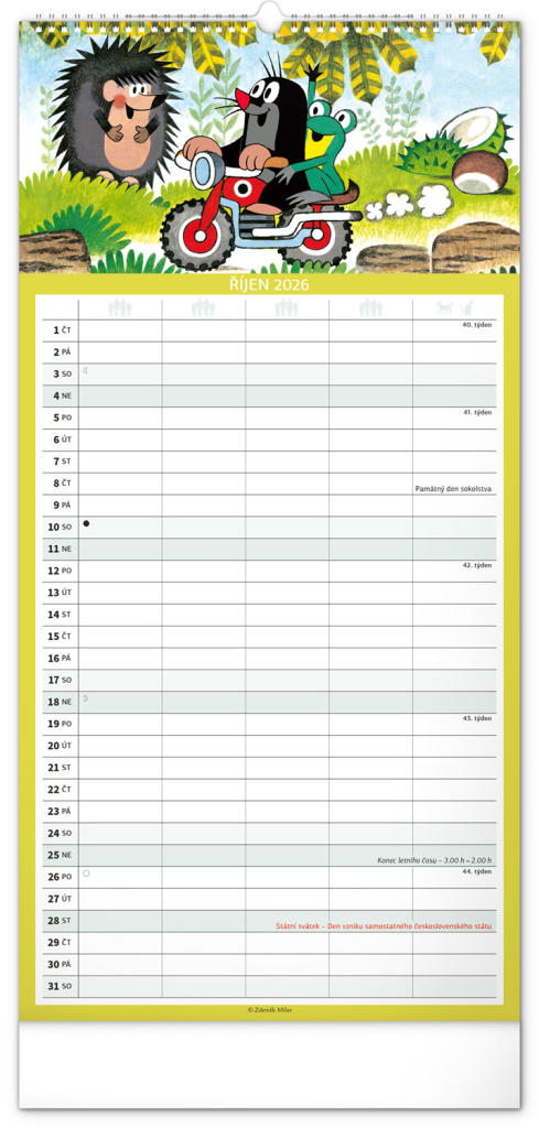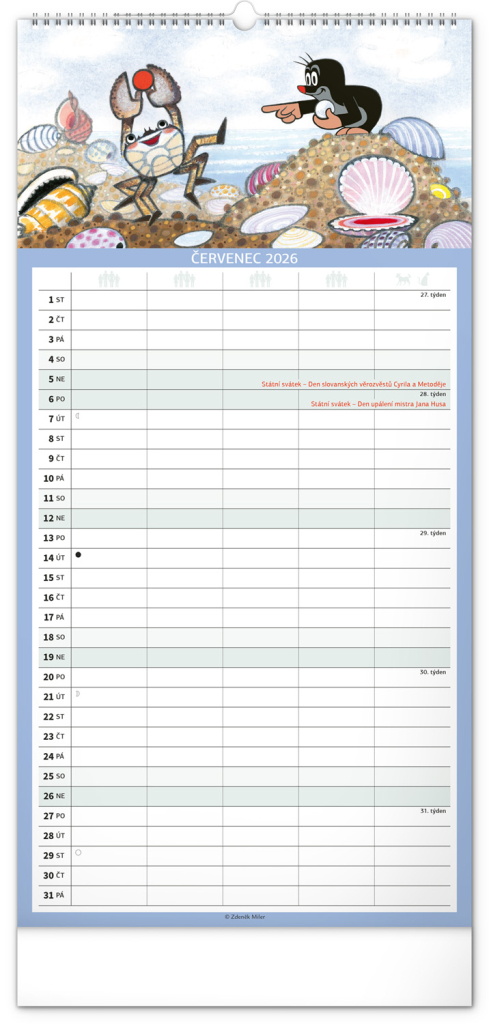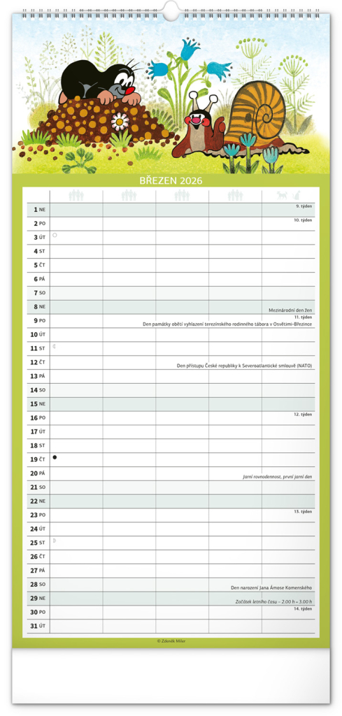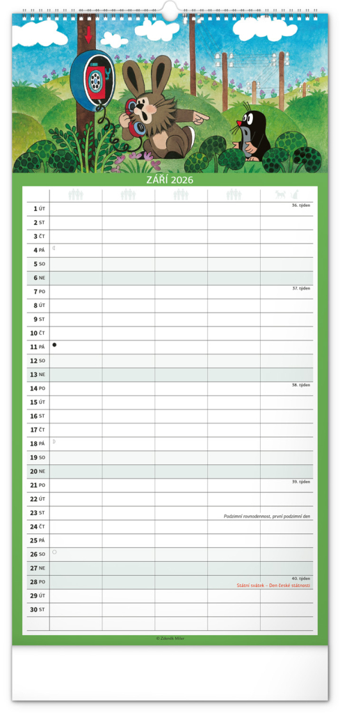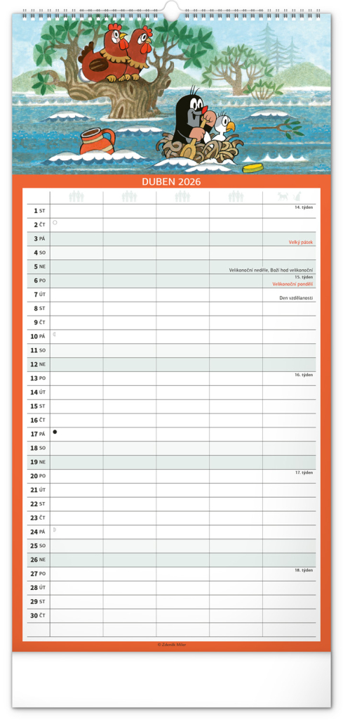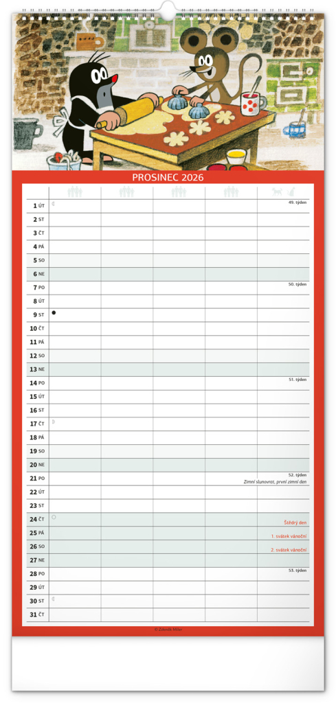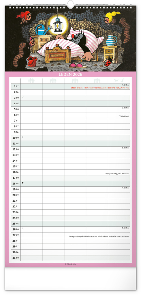 České kalendárium respektuje naše tradice, svátky, školní prázdniny i významné dny. Skvěle se hodí do české domácnosti, a navíc – motiv Krtečka je čistě naším unikátem, který nikdy neomrzí.