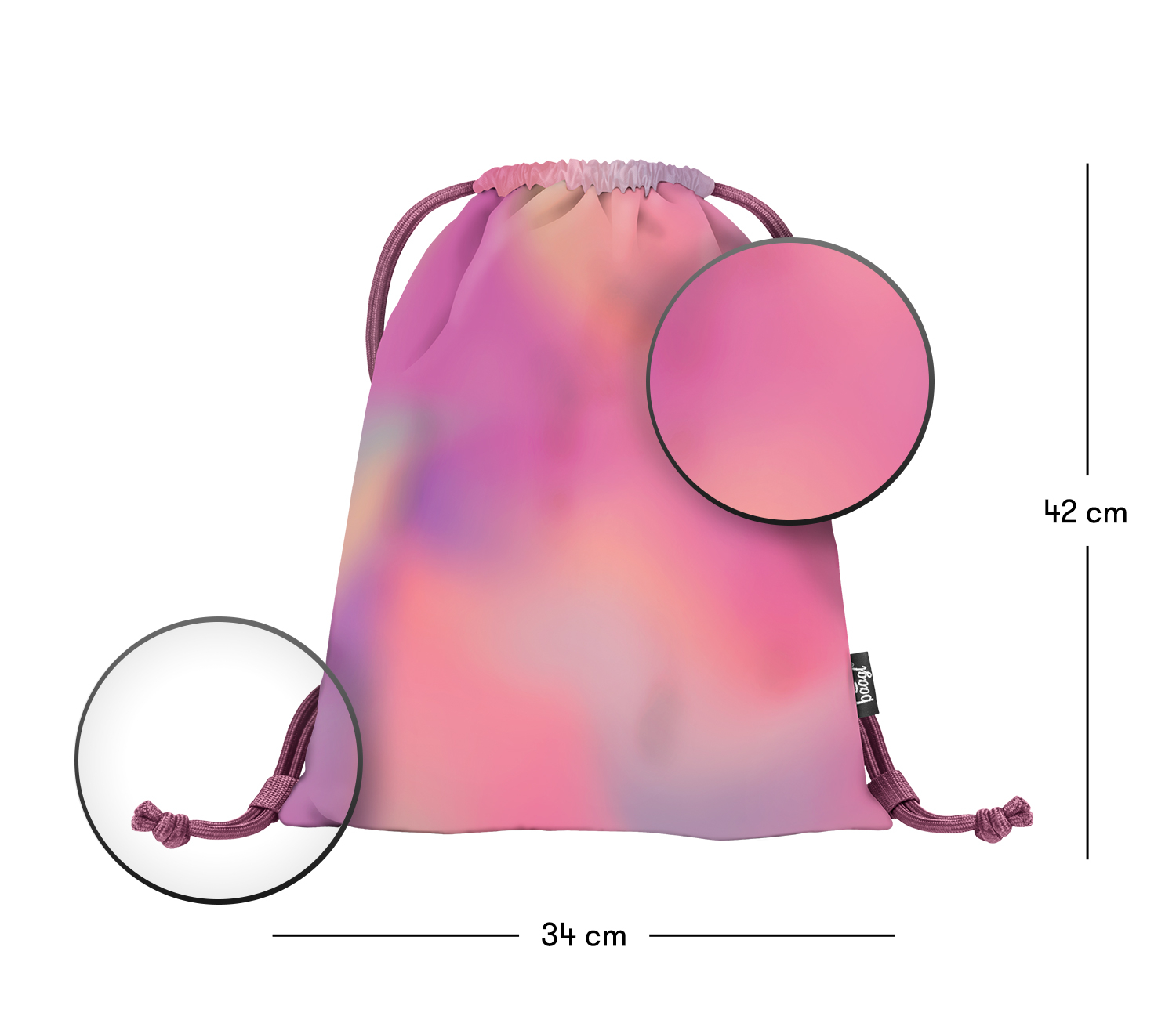 Fashion sáček Fun Holo #BFF je vyrobený z výrazného holografického materiálu ve fialovorůžovém odstínu. • Fashion sáček na cvičky nebo přezůvky. • Sáček je vyroben z pevného omyvatelného materiálu. • Zdrhování pomocí pevných tkanic, které zároveň umožňují nošení na zádech.