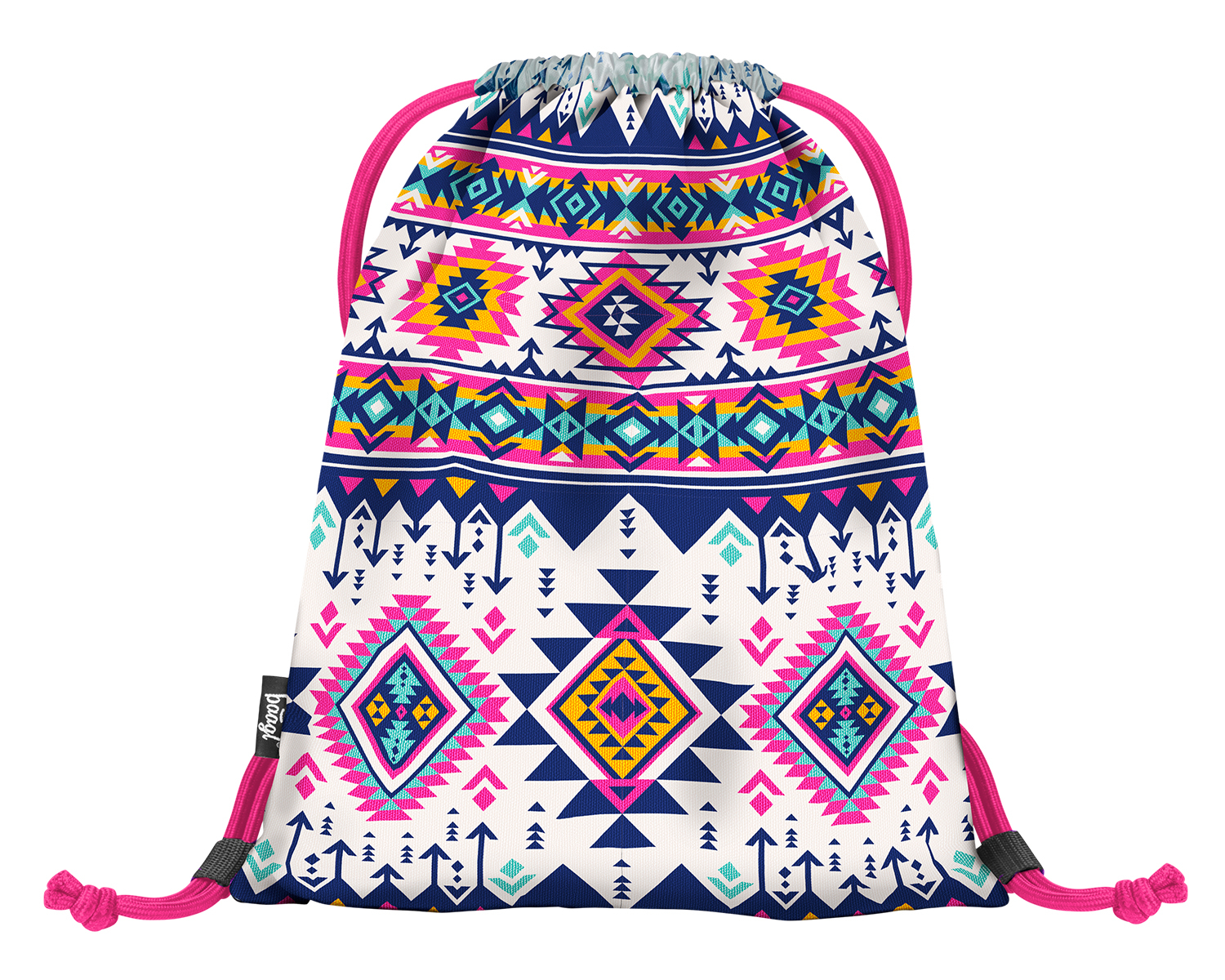 Sáček na obuv Boho z kvalitního pevného materiálu s indiánským potiskem. • Sáček na cvičky nebo přezůvky z pevného omyvatelného materiálu. • Zdrhování pomocí pevných tkanic, které zároveň umožňují nošení na zádech.