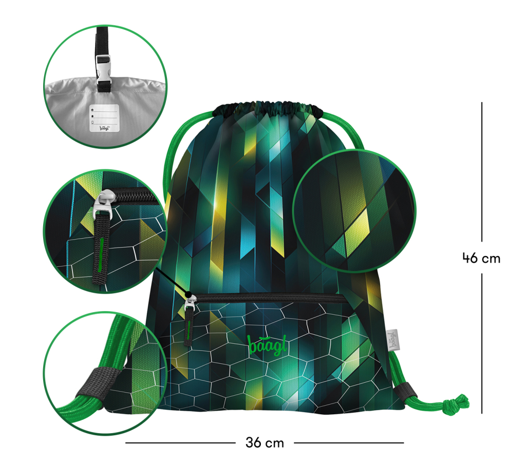 • Sáček je vybaven karabinkou díky, které ho lze připevnit na aktovku.