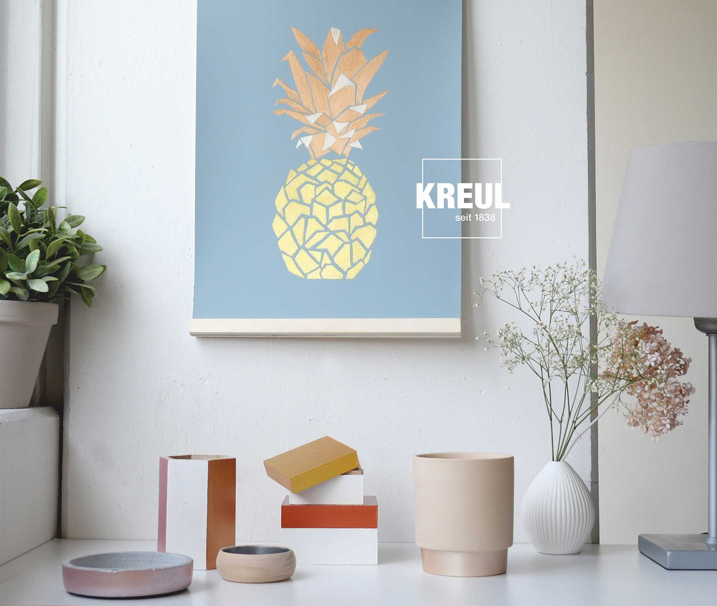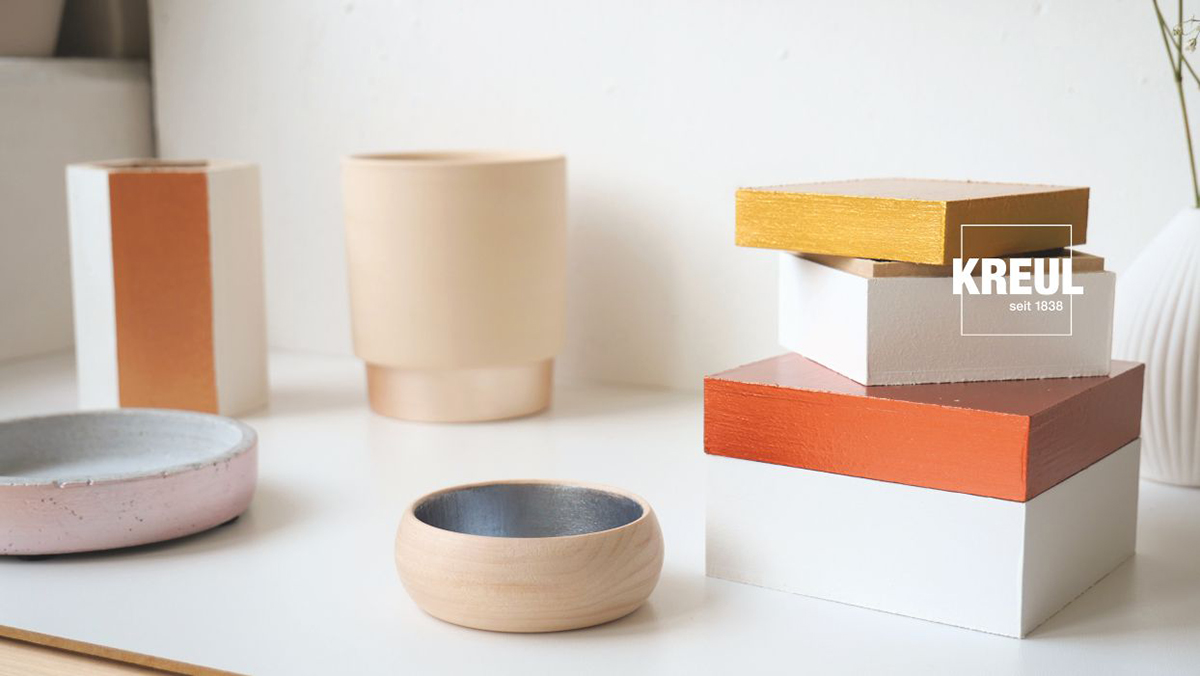 KREUL Akrylové matné barvy dodávají každému dekorativnímu projektu jednoduchou eleganci. Jejich přitažlivost spočívá v dokonalé shodě barevných odstínů. Teplá grafitová šedá, přátelská citronová žlutá nebo tmavě zelená jedle.