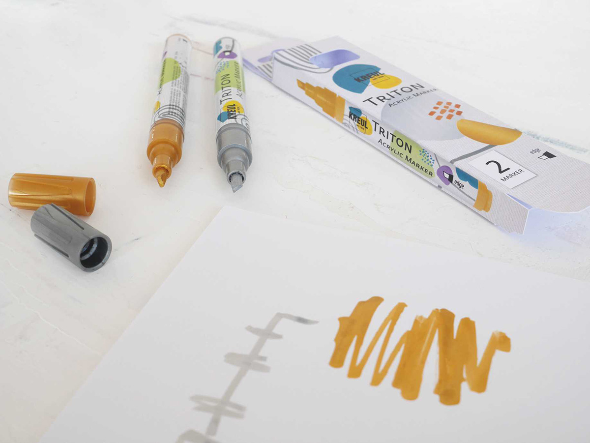 Náš tip: Akrylové fixy TRITON je nejlepší kombinovat s akrylovými barvami TRITON. Budete tak mít zaručeno, že kontura, kterou vytvoříte fixem a barva, kterou budete malovat větší plochu uvnitř bude mít úplně stejný odstín.