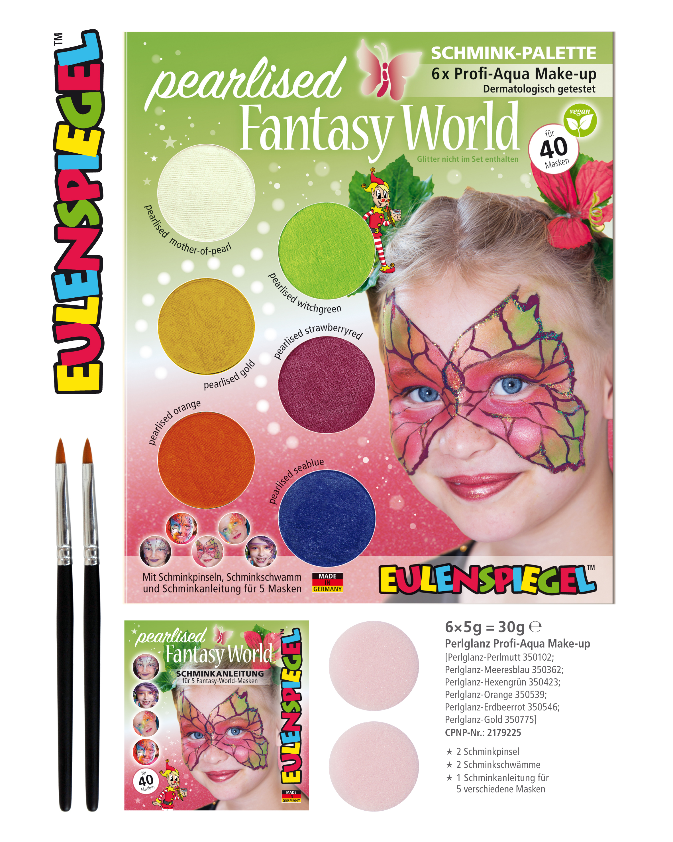 Paletka se skládá ze šesti barev Eulenspiegel (každá 3,5 ml), 2 štětců, 2 houbiček na make-up a kompletního návodu krok za krokem pro příslušné motivy.