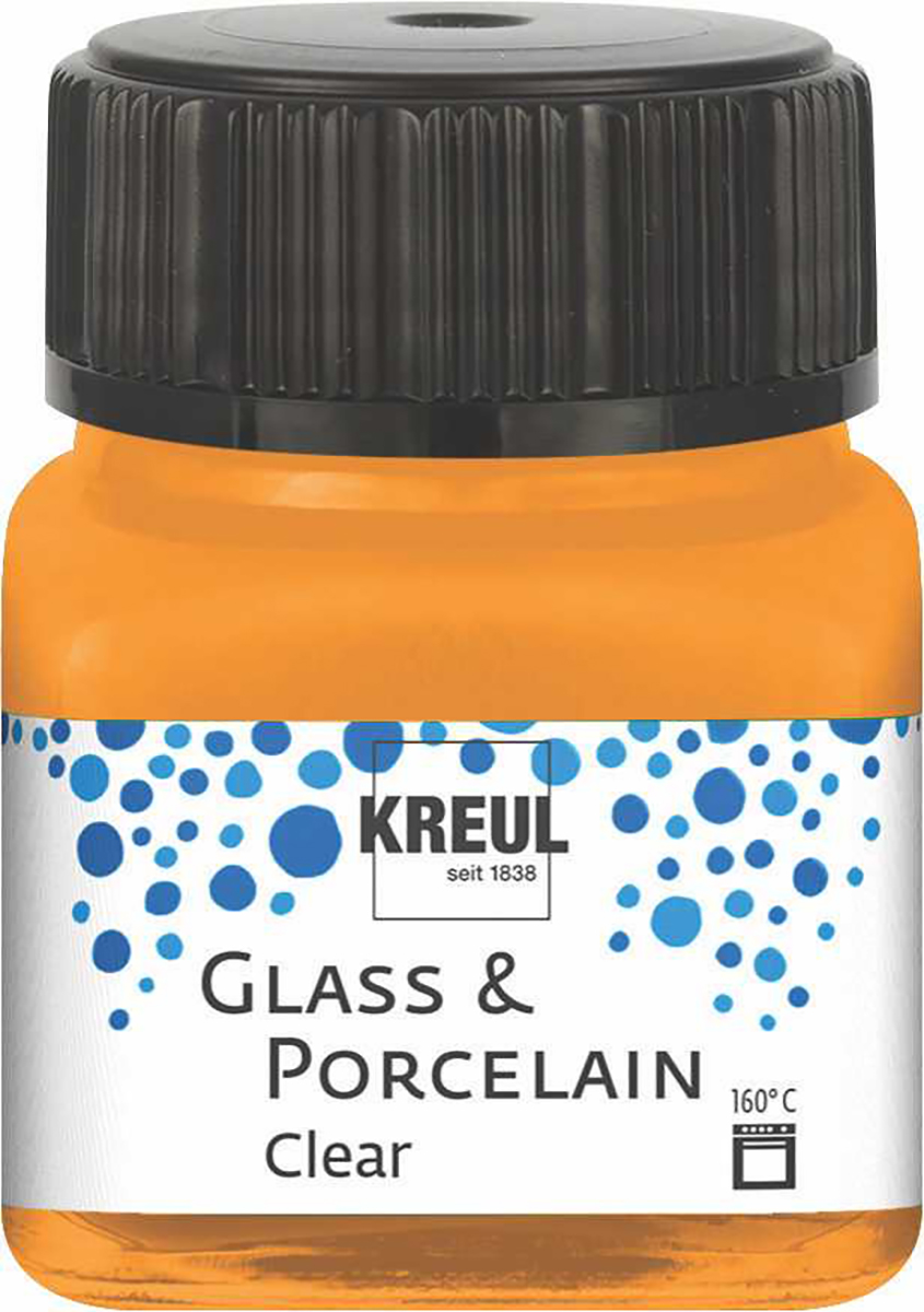 • 6 x barva na sklo a porcelán KREUL clear 20 ml – sluneční žlutá, oranžová, královská červená, tmavě modrá, tmavě zelená, espresso hnědá