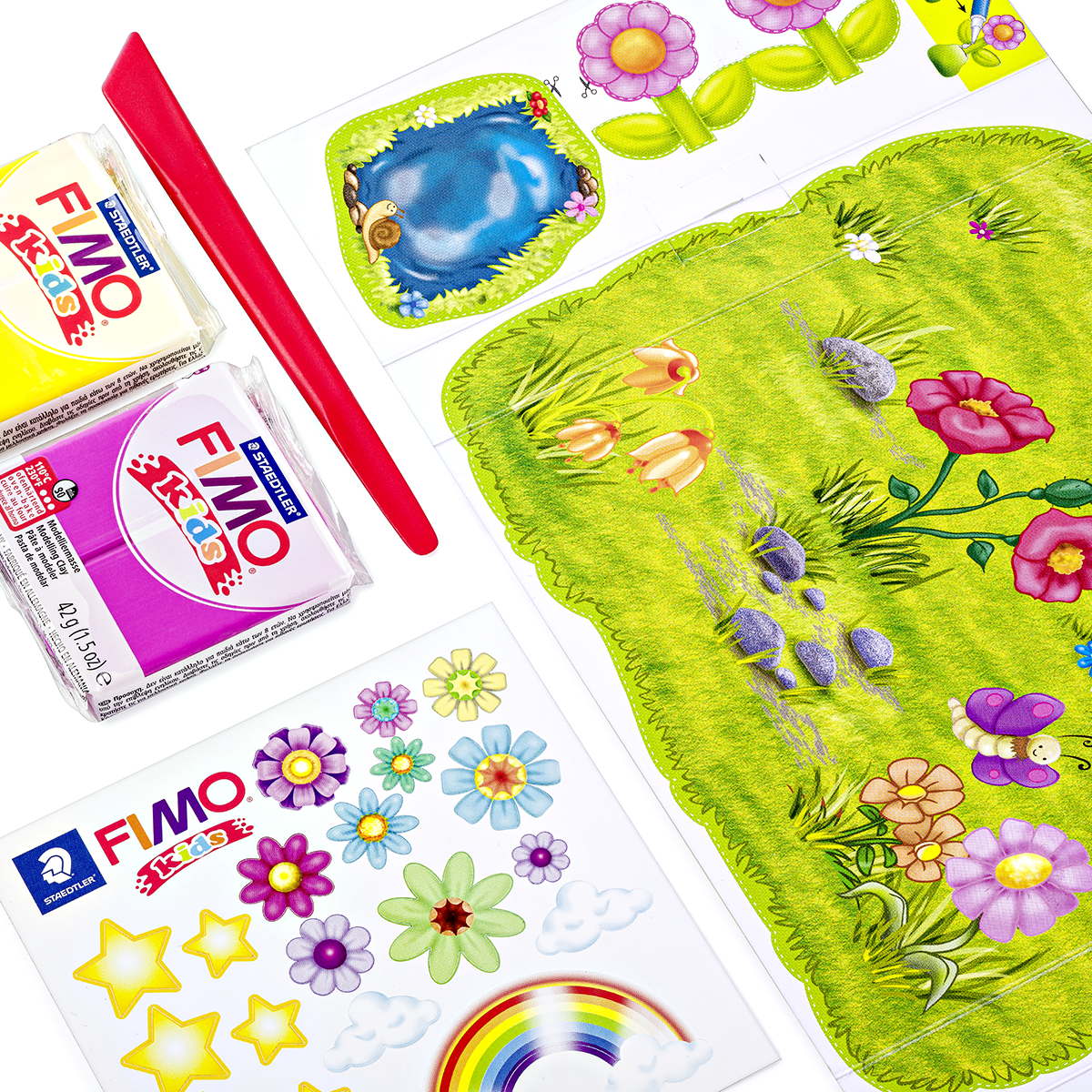 Se sadami FIMO kids "form & play" mohou děti vytvářet různé tematické světy podle detailních a dětem srozumitelných pokynů a vytvořit si tak svůj vlastní příběh ve světě her, který si vlastnoručně vyrobily. Bez ohledu na množství zkušeností s modelováním, které děti mají, si každé může vybrat svou úroveň obtížnosti (1=snadné, 2=středně obtížné, 3=obtížné) a dostane detailní, srozumitelný návod jak postupovat krok za krokem s množstvím obrázků. Obrázky odpovídají obtížnosti dané sady. Každá sada obsahuje čtyři balení FIMO Kids, pozadí, které se hodí k danému tématu, modelovací nástroj a brožurku s návodem. Tyto "zelené"sady jsou mezi dětmi nejoblíběnější ze všech produktů z řady FIMO kids a jsou velmi vhodné jako dárek.