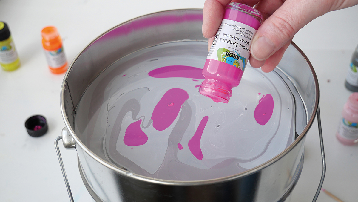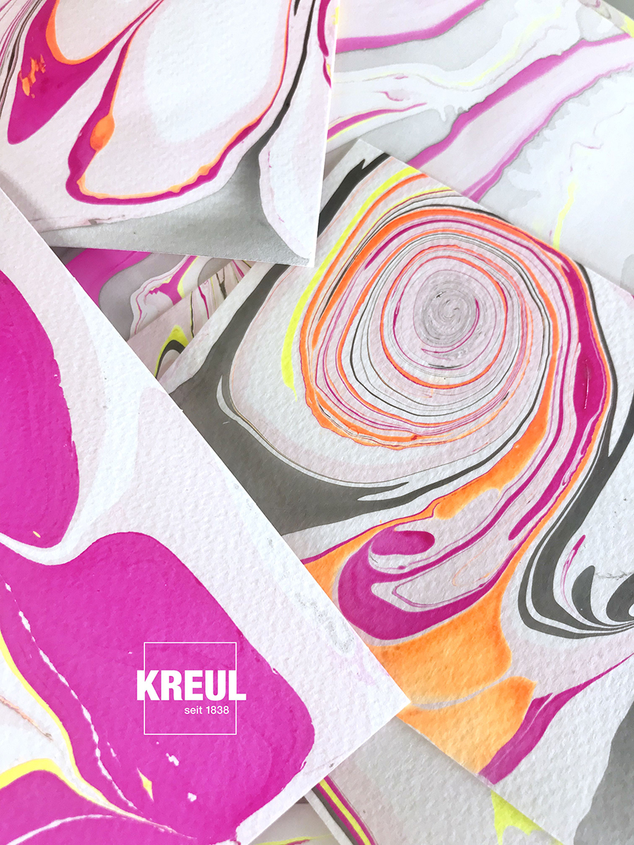 Setkali jste se už někdy s mramorováním? Tato technika je velice jednoduchá a tak můžete lehce tvořit i s vašimi dětmi. S mramorovacími barvami Kreul vytvoříte krásné dekorace, ať už mramorovaná velikonoční vajíčka, vánoční ozdoby, svíčky nebo cokoliv dalšího, co vás napadne. Mramorovat tak můžete např. pohlednice, porcelánové hrnečky, keramiku, skleněné dekorace či výrobky ze dřeva. Zkrátka, kdykoliv potřebujete vytvořit neobvyklý a neopakovatelný vzor, mramorování nabízí netušené možnosti.