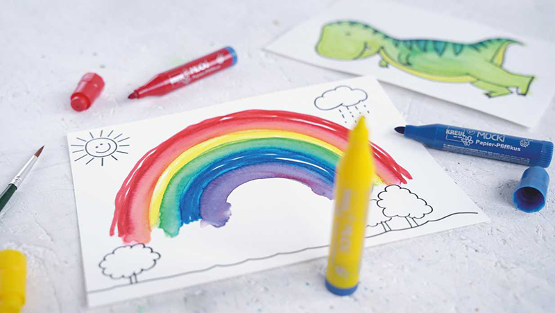 • pastelové prstové barvy na bázi vody pro malování na prsty, rukami nebo dětskými štětci