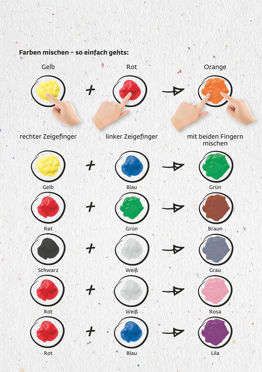 Sada pro získání kreativních dovedností malých i velkých děti. Děti budou mít nové zkušenosti s mícháním barev hravou formou. Nechte malé umělce namíchat barvy svými prsty a vybrat správnou barvu pro jejich oblíbené zvířátko. Malování obrázků prsty stimuluje