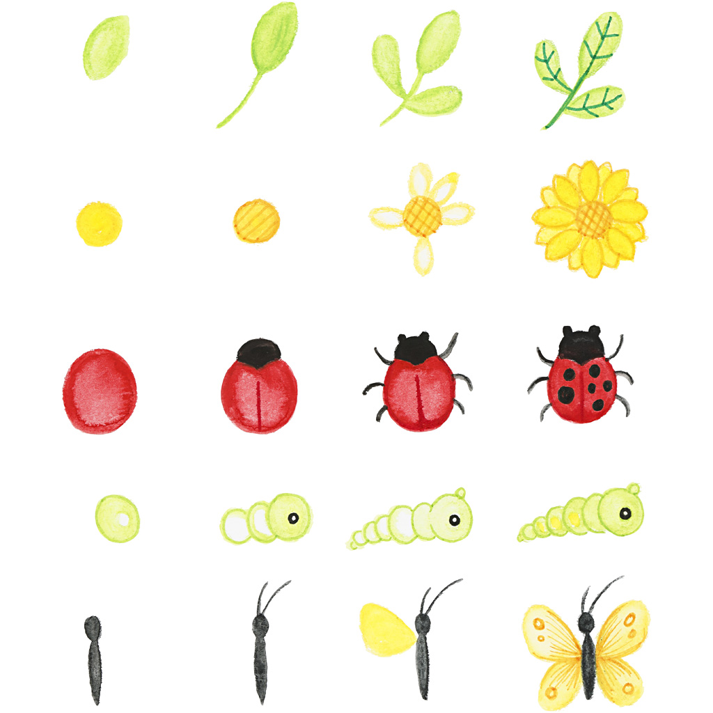 Sada, která spojuje objevování v přírodě s kreativitou. Různé předtištěné listy s ilustracemi lze vybarvovat, dotvářet, používat jako kontrolní listy a návody krok za krokem.