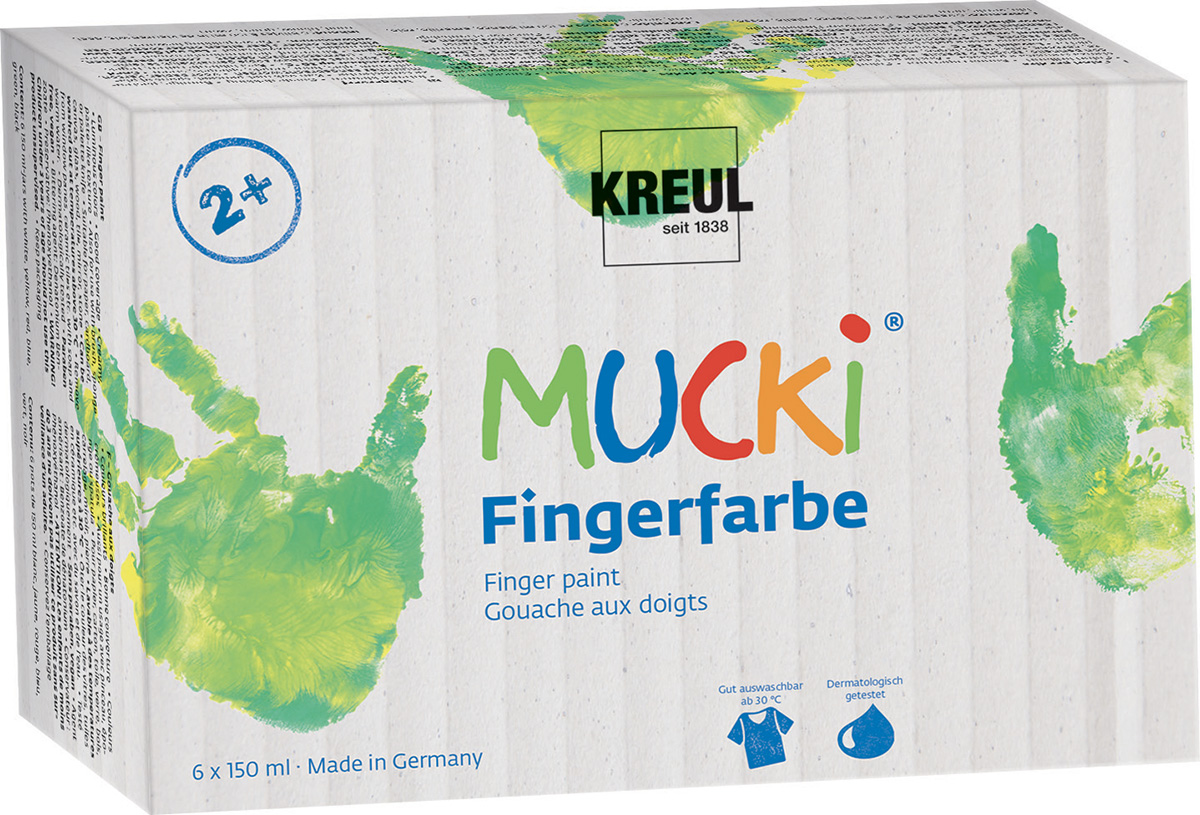 Malování, razítkování, míchání či jen obtisknutí malých ručiček namočených do prstových barev. Když se malé prstíky a nožičky dostanou do kontaktu s pestrými prstovými barvami MUCKI, stane se toho tolik: trénují se senzomotorické dovednosti, zlepšují se prstové dovednosti, rozvíjí se kreativita, barevné vnímání a roste radost a zvědavost. Prstové barvy MUCKI jsou dermatologicky testované, bez parabenů, bez lepku, bez laktózy a veganské. Jejich velkou výhodou je, že se snadno smývají jak z rukou, tak i z oblečení při teplotě 30 °C a vyšší. Tyto barvy jsou také šetrné k životnímu prostředí.