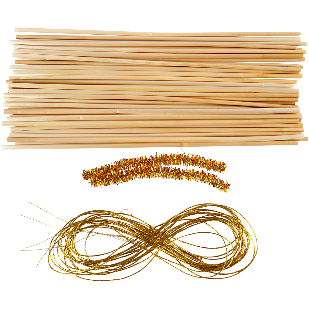 Sada pro 2 slaměné anděly se zlatou nití k zavěšení.
