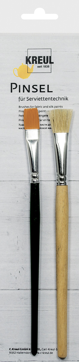 Tyto štětce jsou vhodné pro ubrouskovou techniky Decoupage, sada obsahuje 2 ks štětců o velikost 16 a 14. Oba jsou ploché a jeden má syntetický vlas, druhý přírodní.