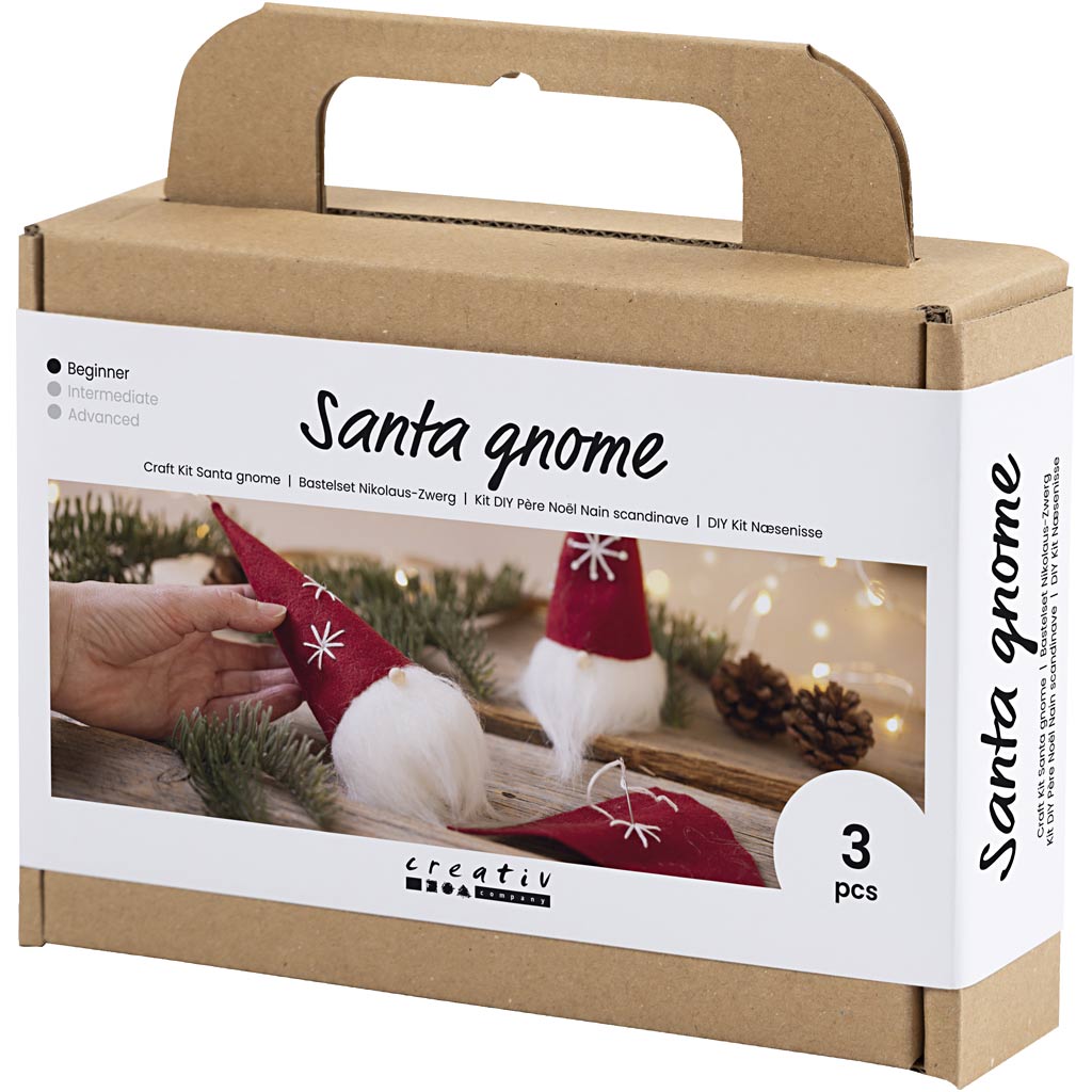 S touto sadou si můžete vyrobit vlastního skřítka Santu z plsti. Obsahuje všechny potřebné materiály a návod: Plsť, kožešina, vyšívací příze, dřevěné korálky, polystyren, páska a jehla.