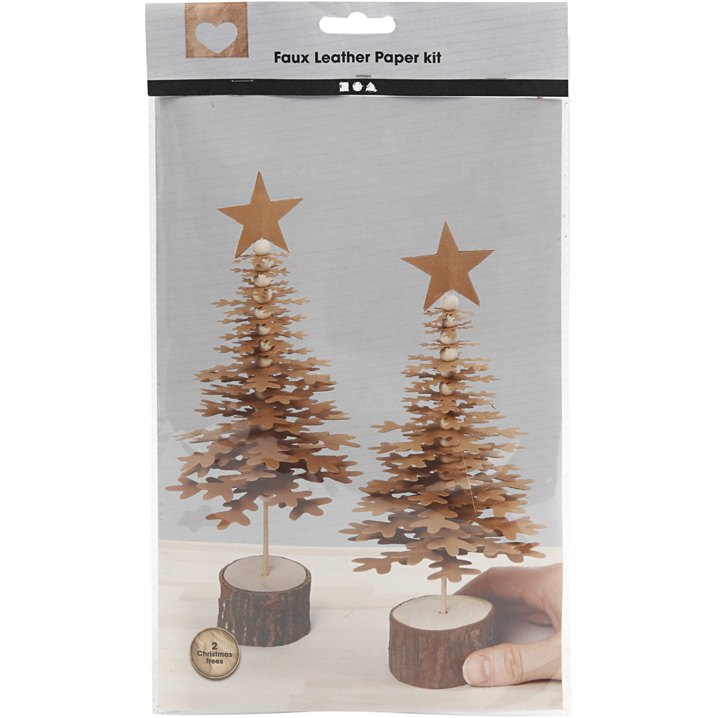 Sada VÁNOČNÍ STROMKY Z KOŽENÉHO PAPÍRU natural