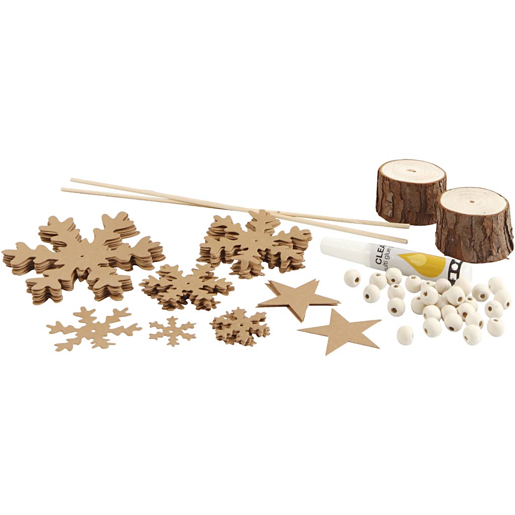 Materiálová sada s děrovanými motivy vrstev na vrstvě, osazená dřevěnými korálky na vánoční stromky na noze.