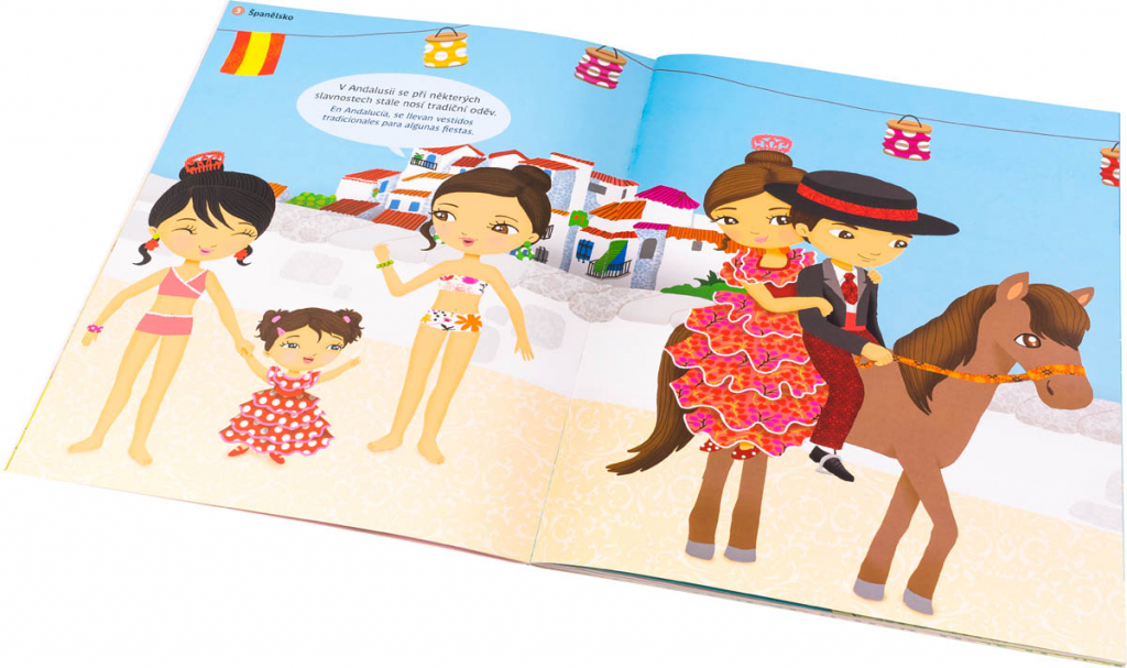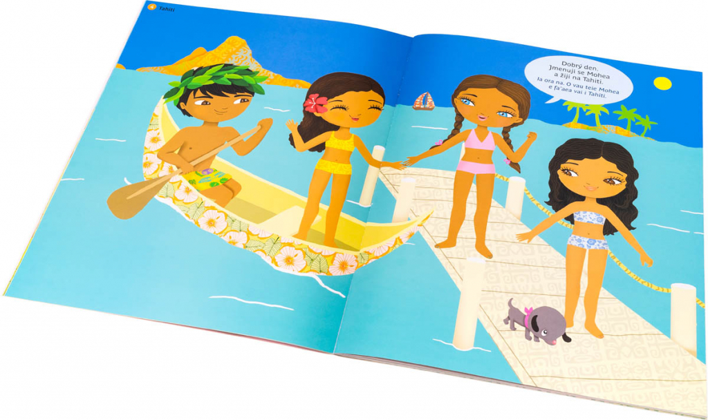 Tato série představuje nejmenším tahitskou, španělskou, indiánskou či eskymáckou kulturu. Děti zábavnou formou získají a zpřesní si své představy o cizích zemích a jejich obyvatelích. V každé knížce objeví 300 samolepek a řadu obrázků zkušené ilustrátorky a vystudované stylistky Julie Camel, která svým postavičkám, jejich oděvům i kulisám vdechla autenticitu. Velkou zajímavostí jsou v neposlední řadě i dvojjazyčné texty v obrázcích, díky nimž bude pro malé čtenáře poznávání ještě zajímavější a komplexnější.