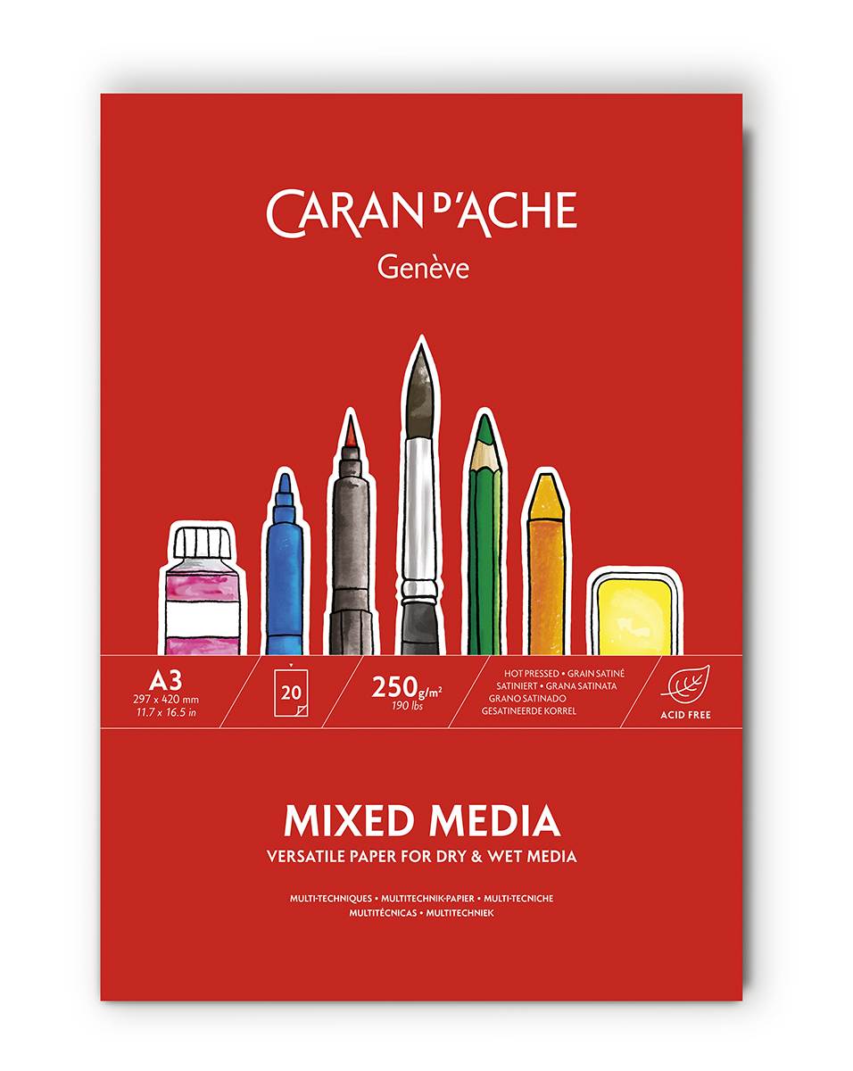 Ideální pro všechny média Caran d'Ache: suché PabloTM, akvarelové SupracolorTM, NeocolorTM I a II pastely, FibraloTM štětcové fixy, kvašové barvy.