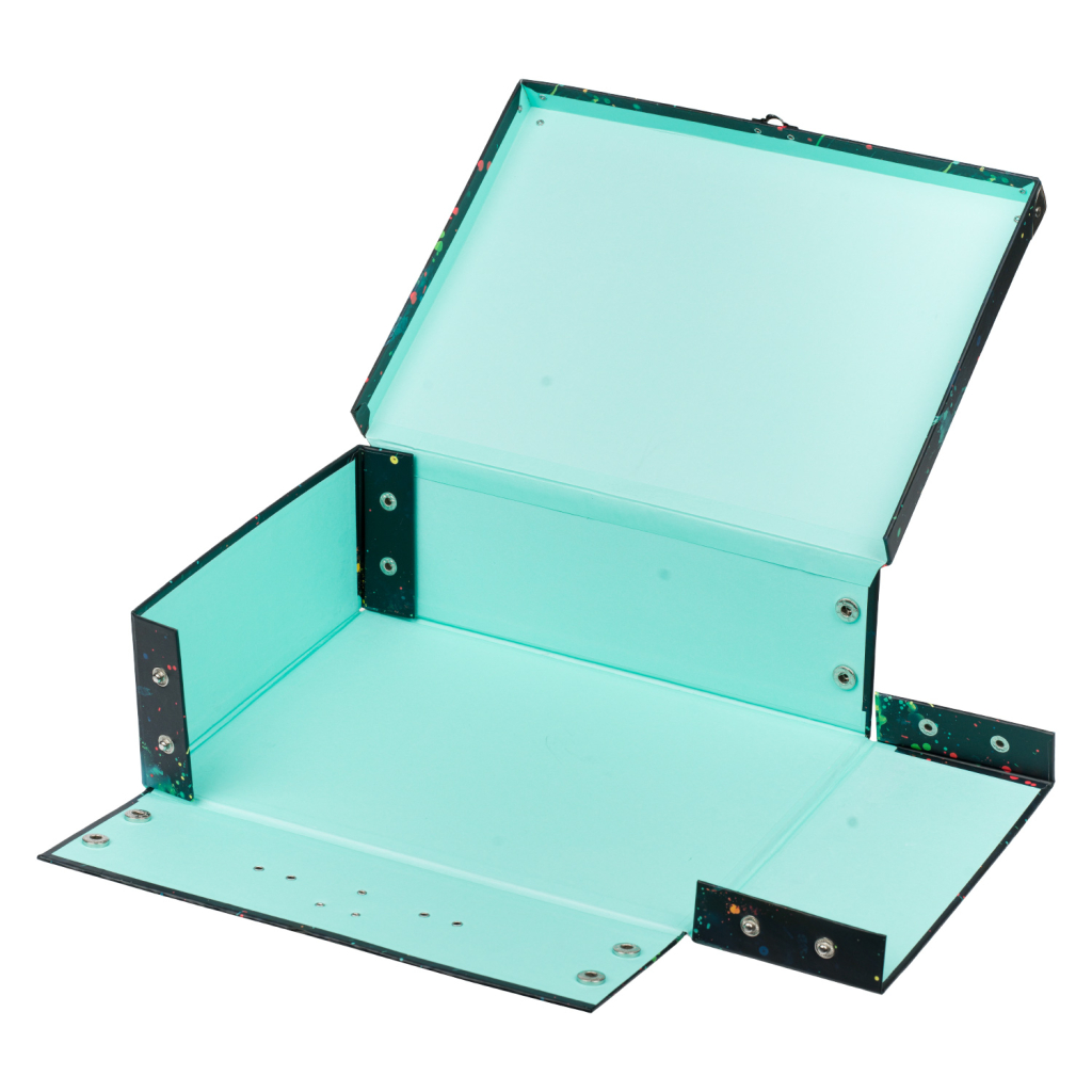 Vyrobený z tvrdého laminovaného papíru, díky kterému je kufřík lehký – dítě jej snadno přenese, a přitom je dostatečně bytelný, aby ochránil všechny poklady uvnitř. Od pastelů, přes sešity až po modelínu!