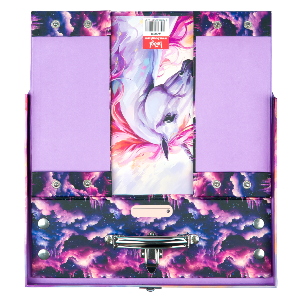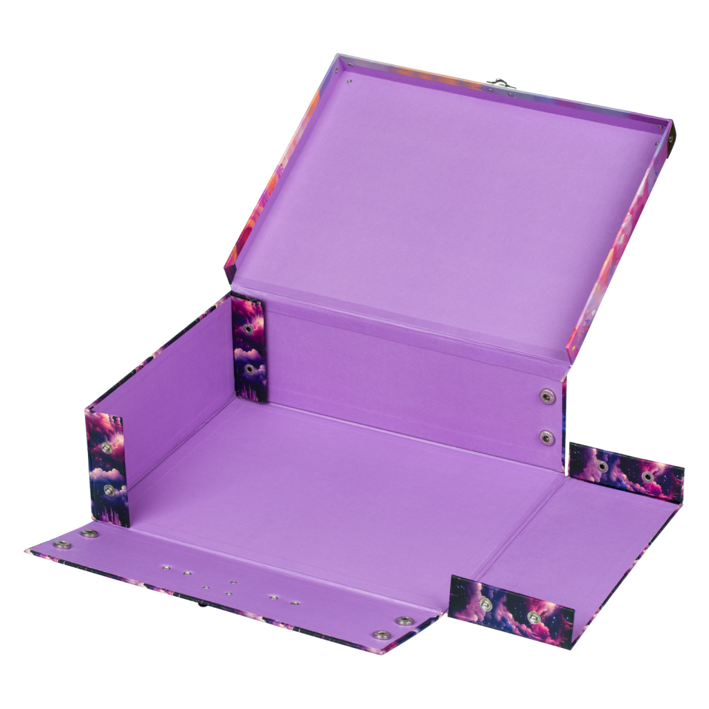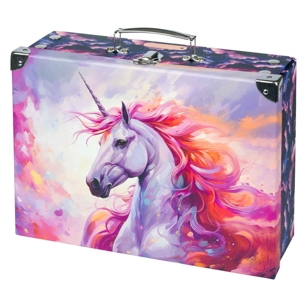Vyrobený z tvrdého laminovaného papíru, díky kterému je kufřík lehký – dítě jej snadno přenese, a přitom je dostatečně bytelný, aby ochránil všechny poklady uvnitř. Od pastelů, přes sešity až po modelínu!