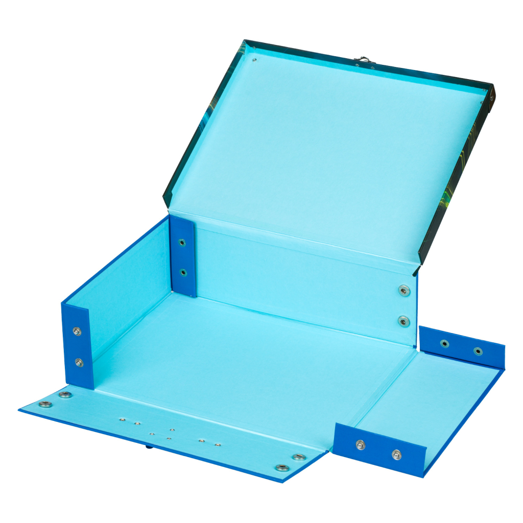 Vyrobený z tvrdého laminovaného papíru, díky kterému je kufřík lehký – dítě jej snadno přenese, a přitom je dostatečně bytelný, aby ochránil všechny poklady uvnitř. Od pastelů, přes sešity až po modelínu!
