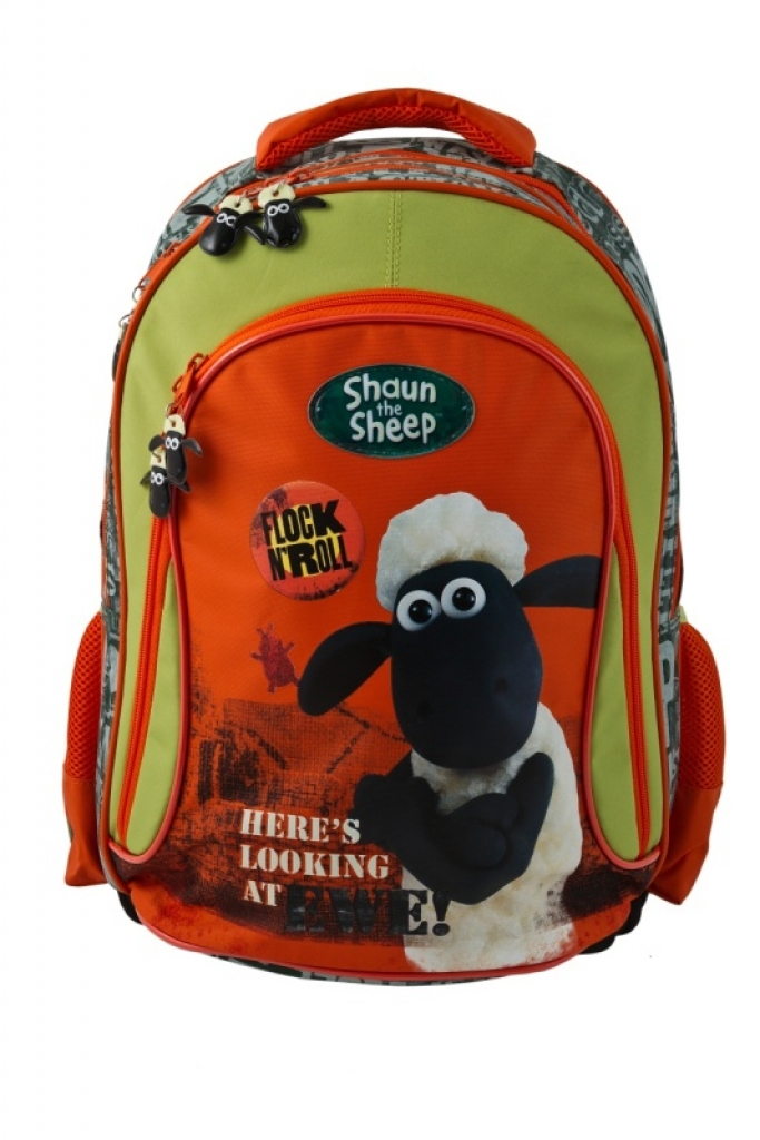 • Batoh je opatřen reliéfním PVC logem Shaun the Sheep na přední kapse a přívěšky na zipech ve tvaru ovečky