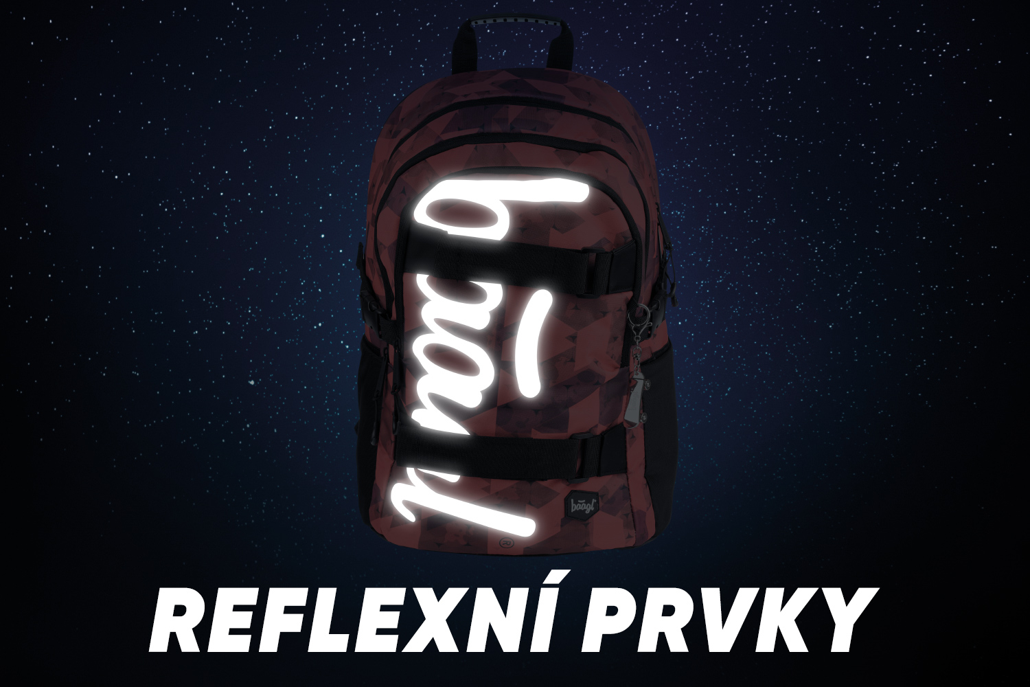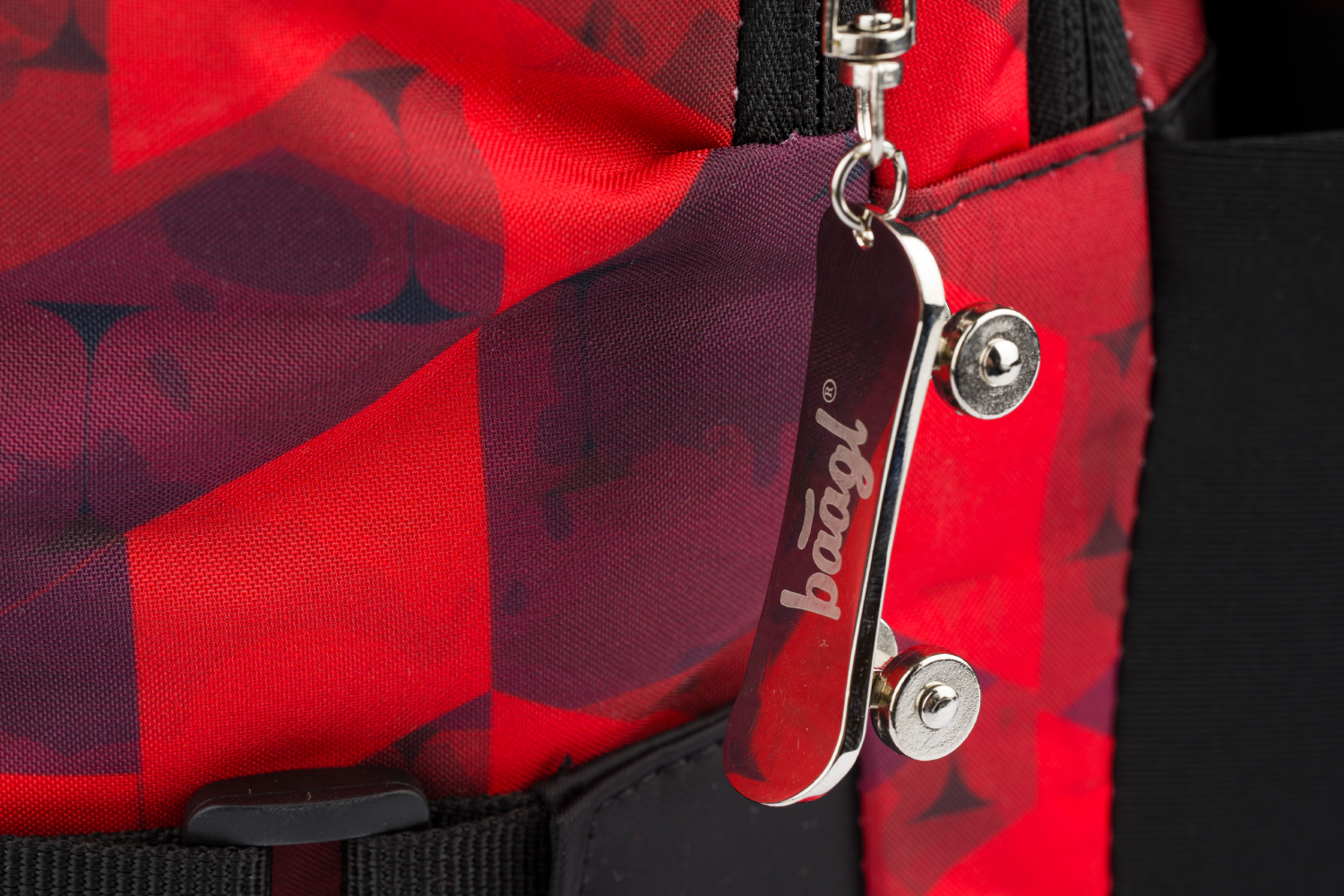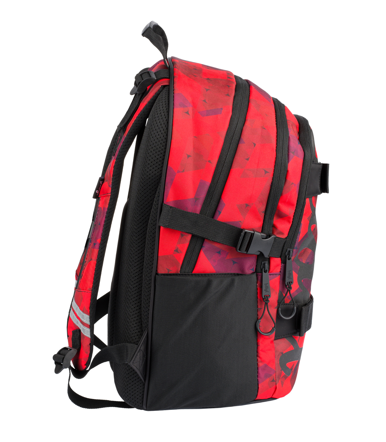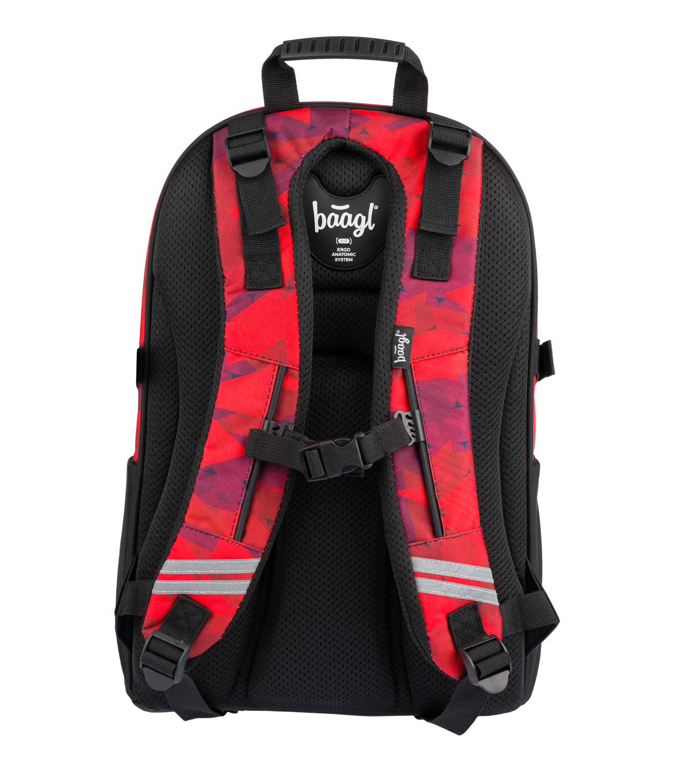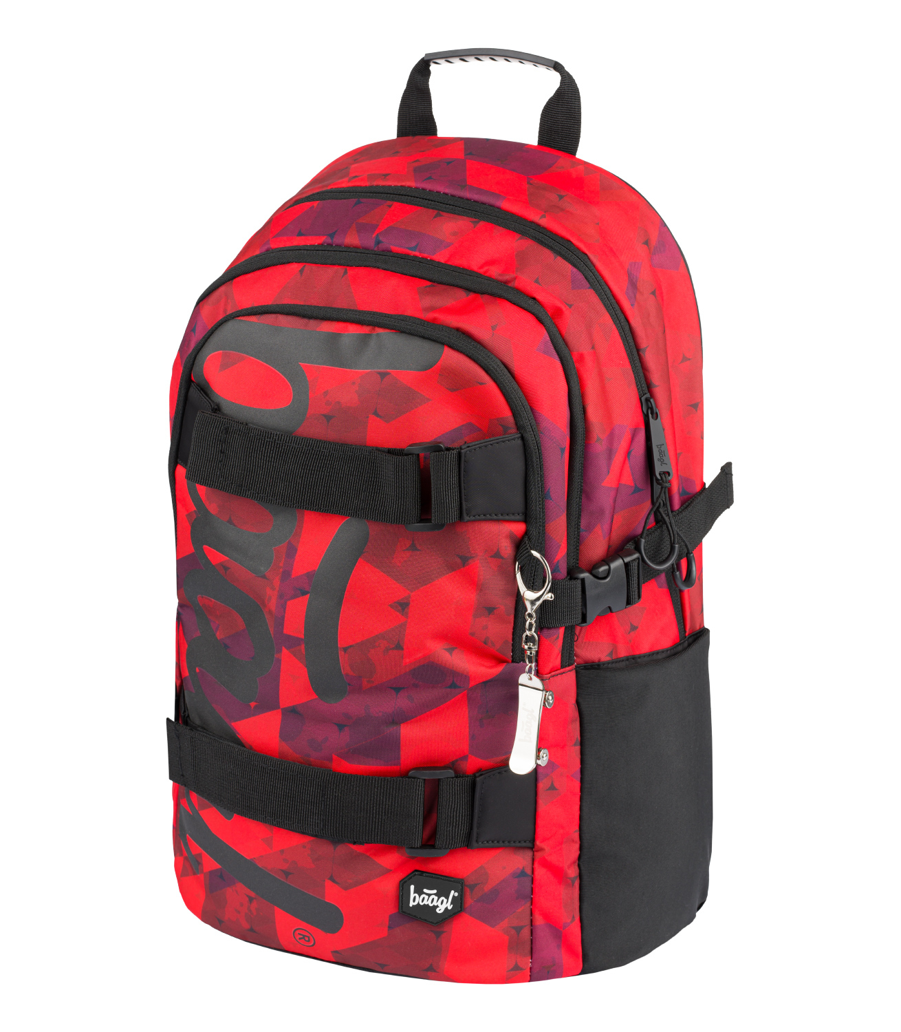 Červený školní batoh Skate Triangle a velkým reflexním logem BAAGL na přední straně. Batoh je vhodný od 3. třídy 1. stupně ZŠ a také pro 2. stupeň ZŠ. • Ergonomický školní batoh se třemi samostatně uzavíratelnými komorami s vnitřním organizérem a kapsou na 15palcový notebook či tablet. • Ergonomicky tvarovaná záda, plně nastavitelné ramenní, prsní a boční kompresní popruhy pro optimální přizpůsobení postavě. • Na přední komoře batohu jsou umístěné dva popruhy na uchycení skateboardu. • Boční kapsy z elastického materiálu, které jsou vhodné pro jednu z našich láhví na pití. • Velmi nízká hmotnost batohu – 850 g. • Objem batohu je 25 litrů, nosnost je 7 kg. • Batoh je vyrobený z pevného voděodolného materiálu. • Reflexní prvky pro bezpečnost dítěte. • Batoh má jako bonus kovový přívěšek ve tvaru skatu. • Batohy z řady SKATE byly testovány a certifikovány v akreditované zkušební laboratoři.